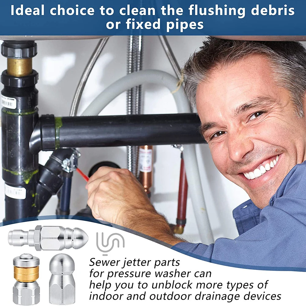 Сопло для мойки дюйма из нержавеющей стали, труба для очистки Слива канализации, струйная быстрая заглушка, дренажный шланг, насадки, инструменты,чистка канализации,прочистка засоров труб,насадка для канализации