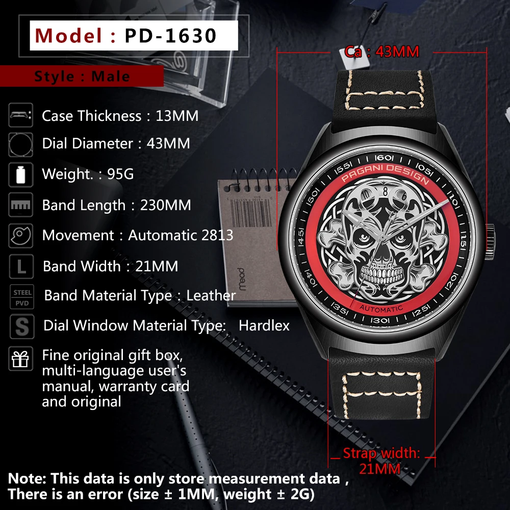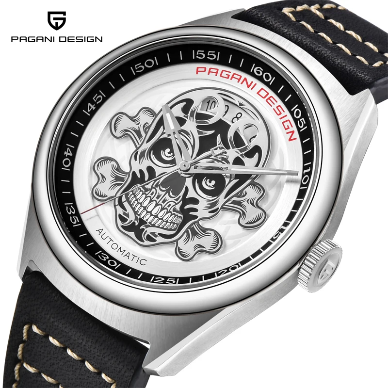 Часы PAGANI DESIGN Мужские механические с черепом, в стиле Чайка, 2813