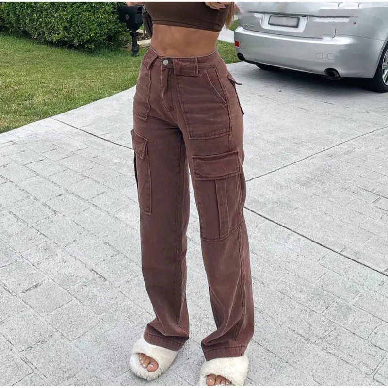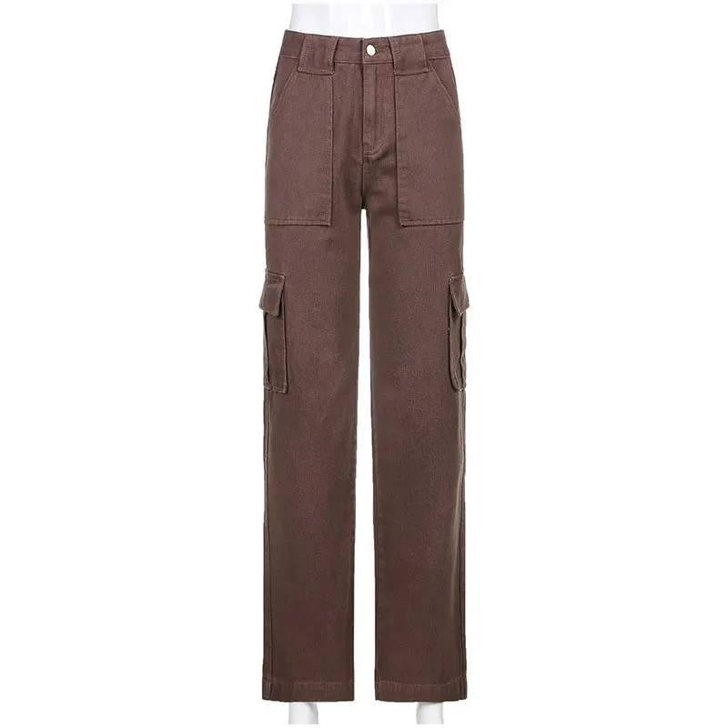 Винтажные мешковатые широкие джинсы Y2K, женские коричневые модные ...