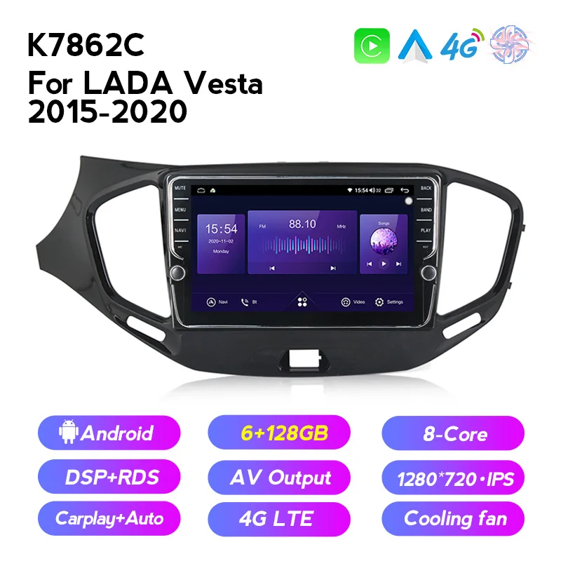 Автомагнитола 6 ГБ + 128 Гб, Android 11, мультимедийный видеоплеер для LADA Vesta Cross Sport 2015, 2016, 2017 -2020, GPS-навигация, разъем 2 din, dvd
