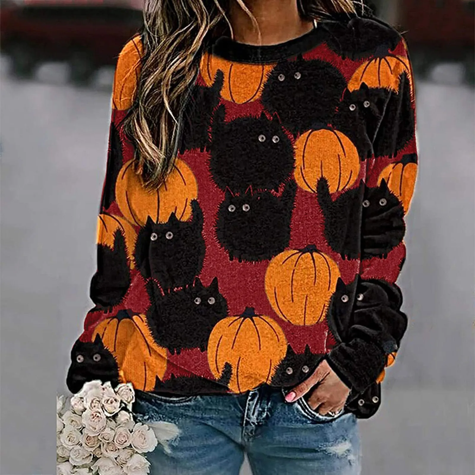 Женская Повседневная Толстовка с длинным рукавом и принтом на Хэллоуин