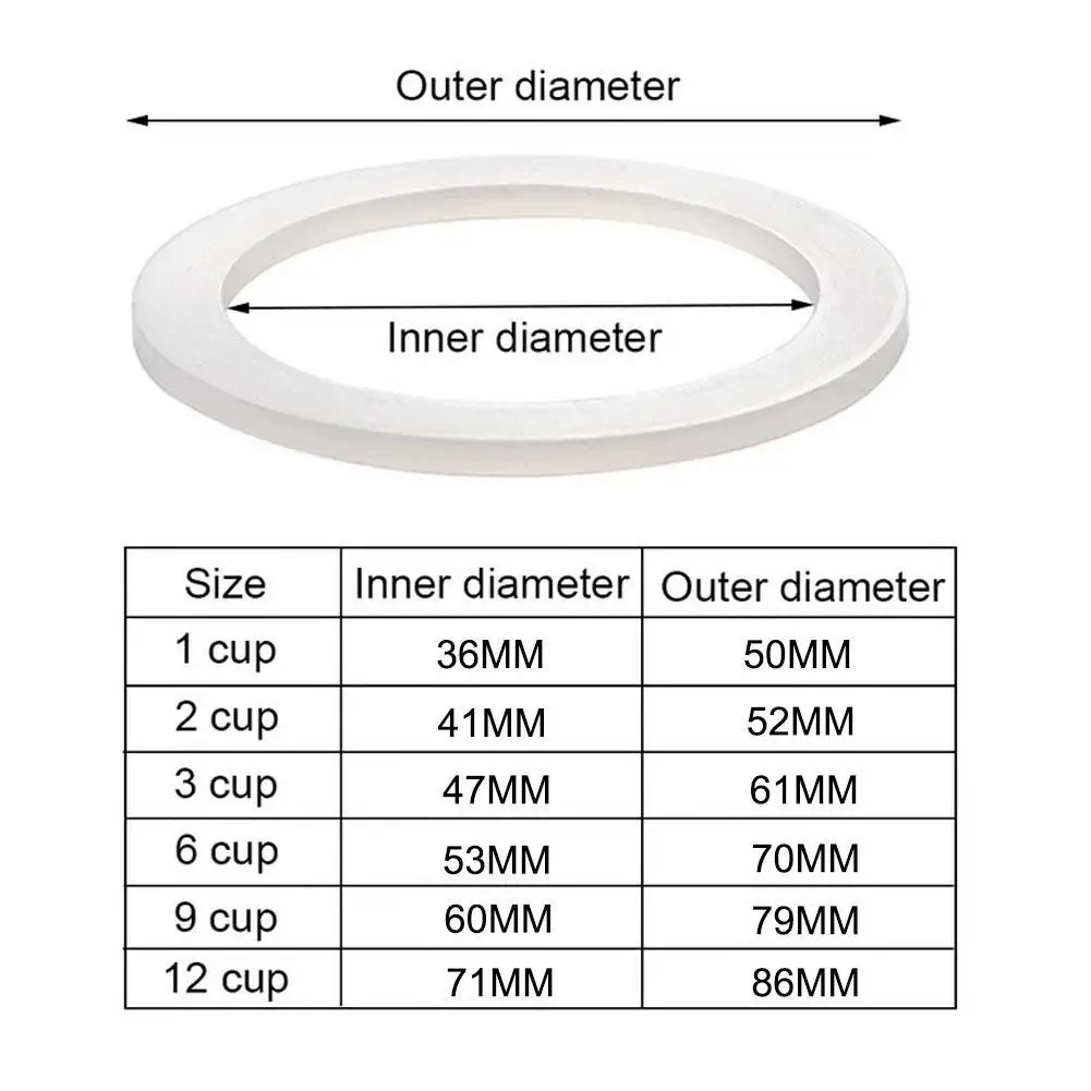 Описание100% новый и высокое качествоЦвет: белыйМатериал: силиконРазмер: 1 чашка: диаметр 50 мм, толщина 3 мм, внутренний диаметр 36 мм2 чашки: диаметр 52 мм, толщина 3 мм, внутренний диаметр 41 мм3 чашки: диаметр 61 мм, толщина 3 мм, внутренний диаметр 47 мм6 чашек: диаметр 70 мм, толщина 3 мм, внутренний диаметр 53 мм9 стаканов: диаметр 79 мм, толщина 3 мм, внутренний диаметр 60 мм12 чашек: диаметр 86 мм, толщина 3 мм, внутренний диаметр 71 ммОсобенности:Идеальный подарок для любителей кофе.Он изготовлен из высококачественного пищевого силикагеля с хорошим уплотнительным эффектом.Прост в установке, прост в использовании и прост в чистке.Экономьте деньги. Нет необходимости покупать новые чехлы для замены старых или изношенных чехлов.Приготовьте себе чашечку кофе и Наслаждайтесь временем кофе!Есть 6 размеров на выбор: 1 чашка, 2 чашки, 3 чашки, 6 чашек, 9 чашек, 12 чашек.Продукт содержит: 1 * уплотнительное кольцо для мокко