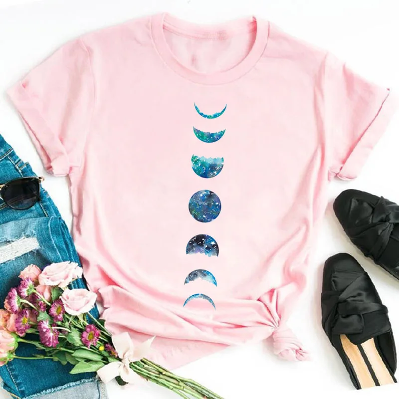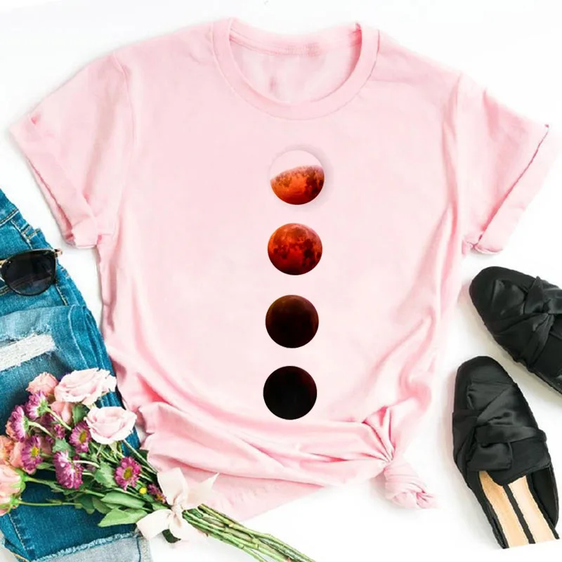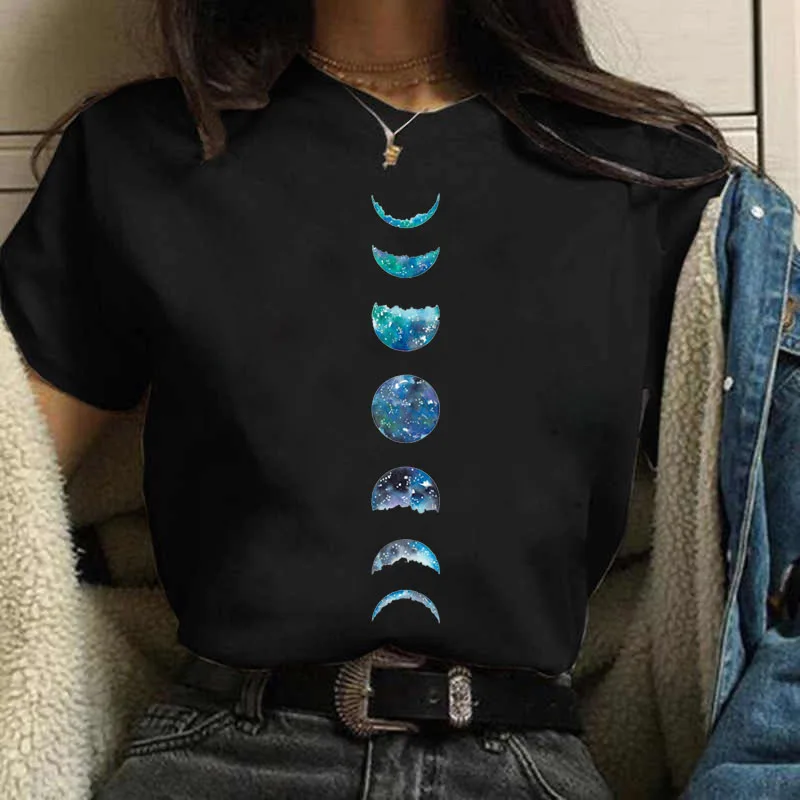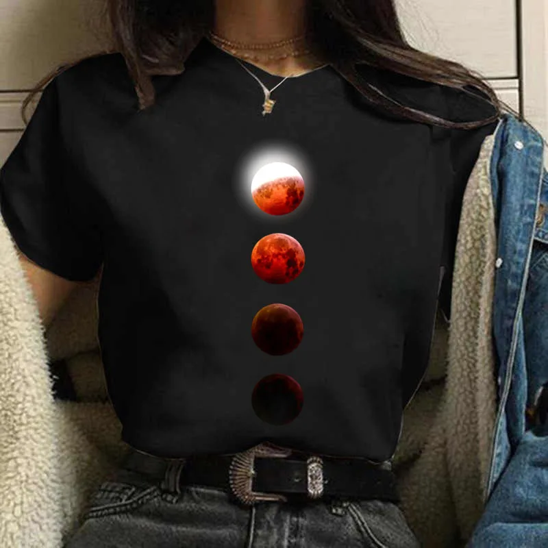 Женский черный топ New Moon, Женская Повседневная футболка с круглым вырезом, женская футболка с принтом лунного затмения