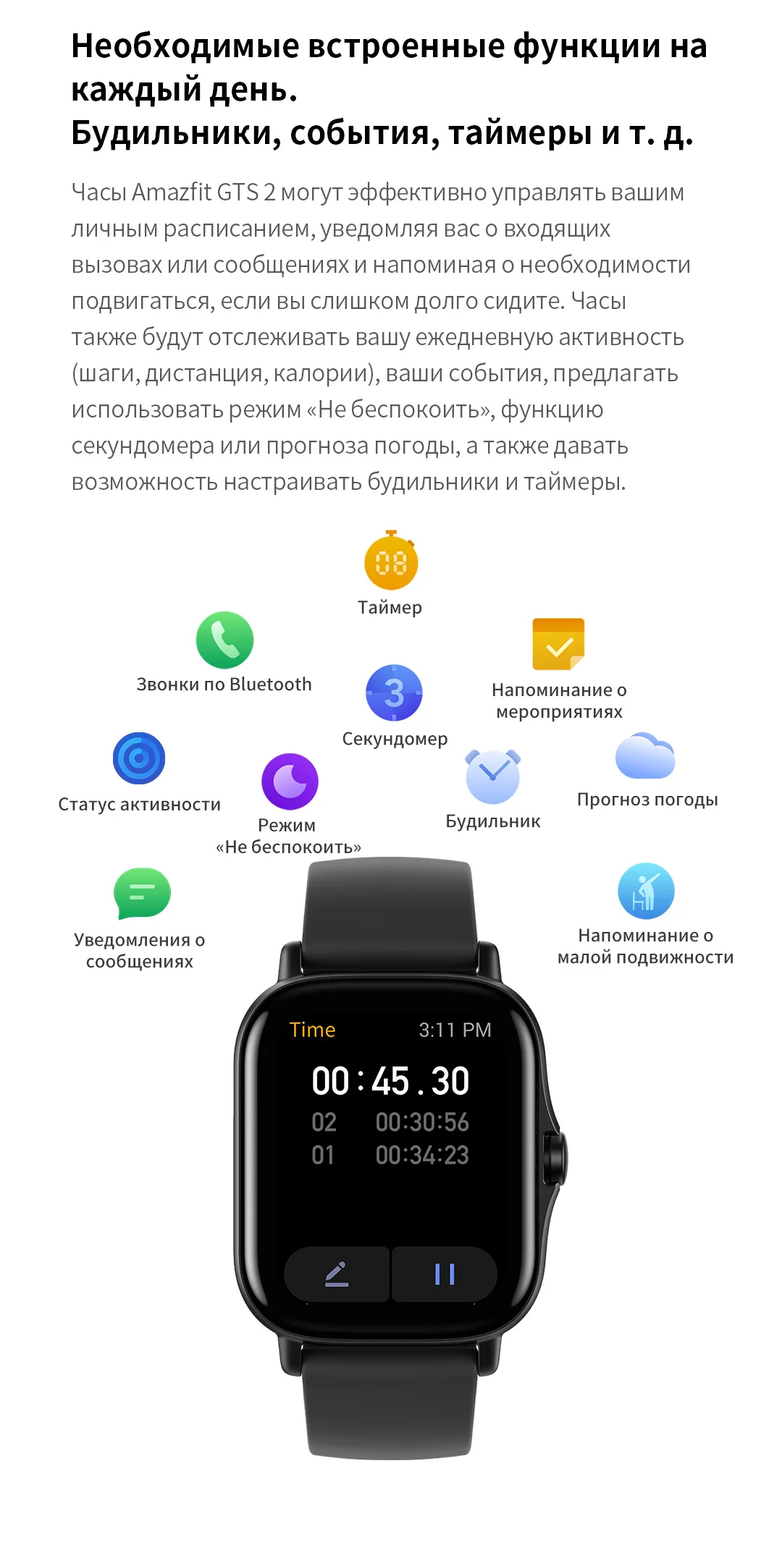 Оригинальные Смарт-часы Amazfit GTS 2 с глобальной прошивкой, водос...