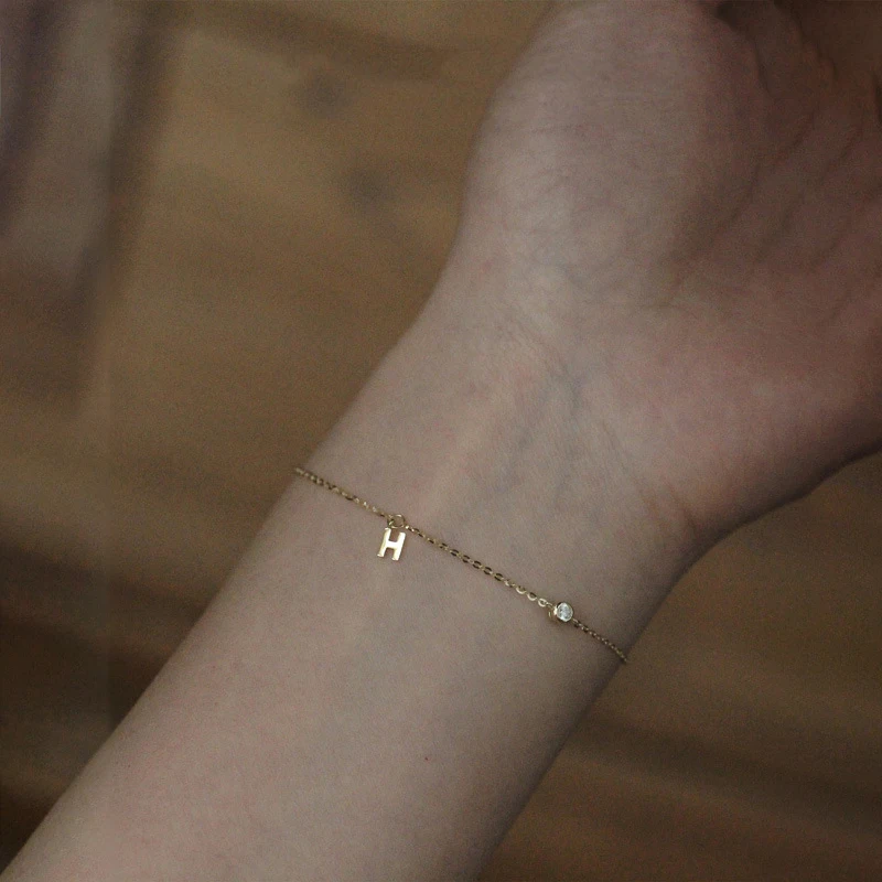 Браслет женский золотой из серебра 925 пробы с буквами из циркония