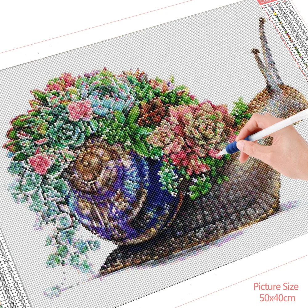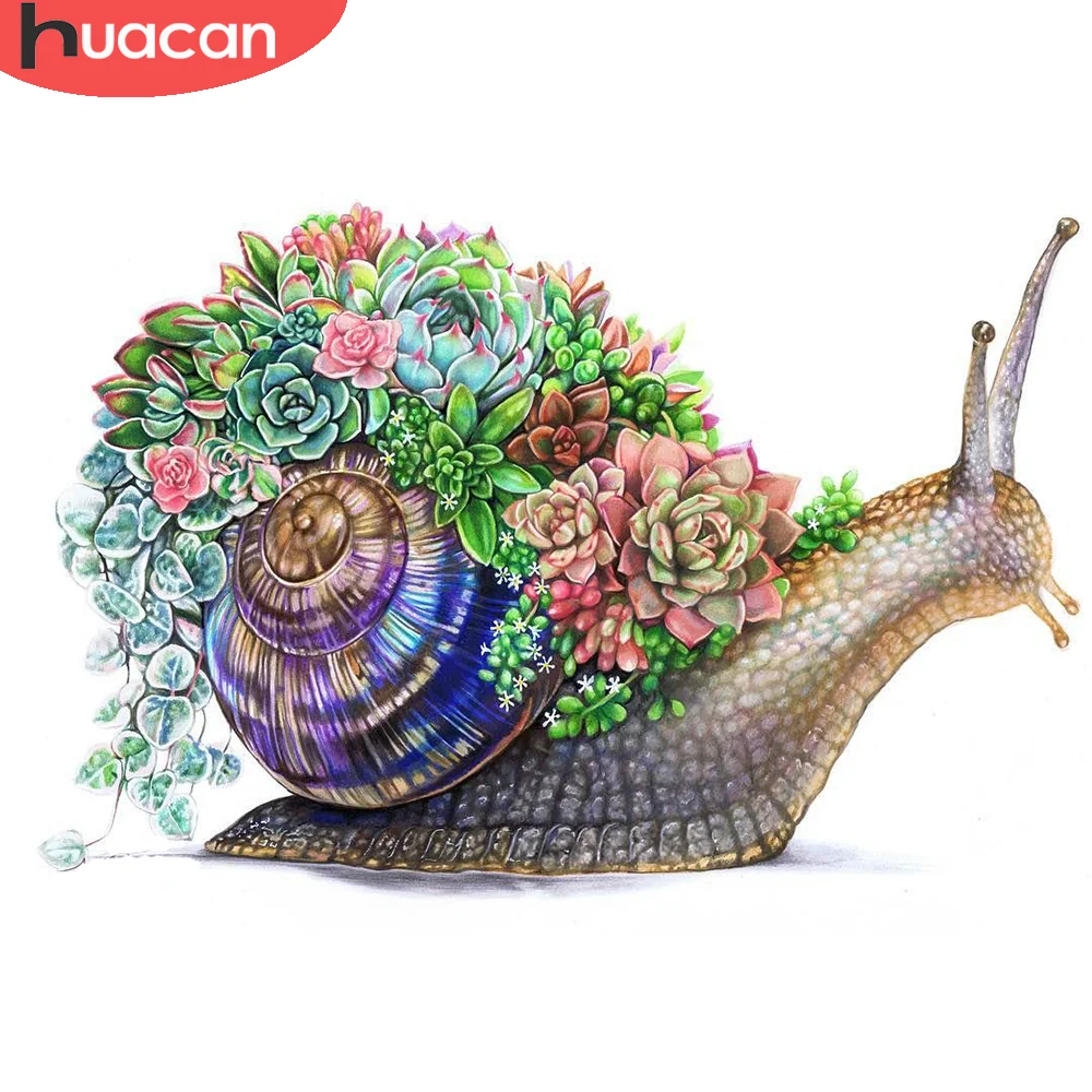 Алмазная живопись сделай сам HUACAN, мозаика, улитки, суккуленты, цветы, алмазная вышивка, животные, Цветочный Декор для дома