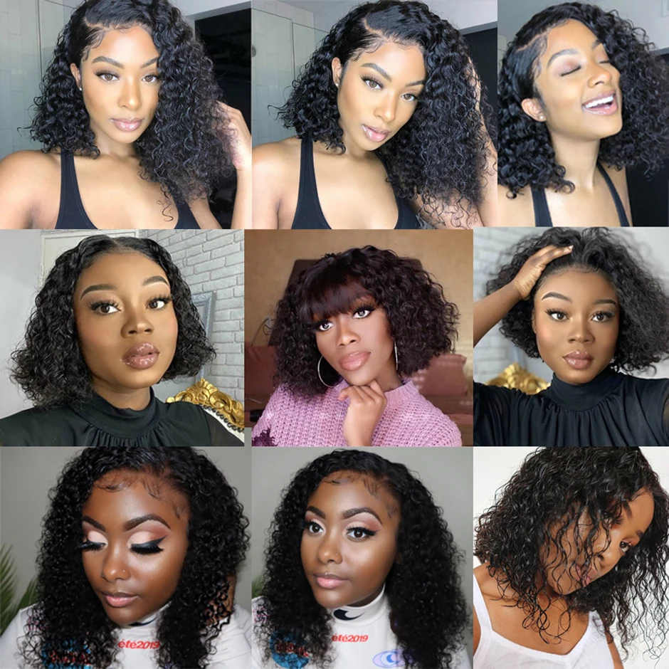 Парик ISEE Hair Bob, кудрявые человеческие волосы, Короткие парики ...