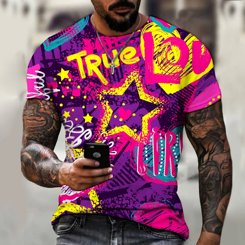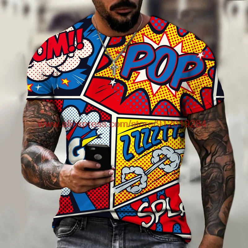 Футболка мужская с коротким рукавом и круглым вырезом, популярная тенниска с 3D-принтом, забавный стиль граффити, модная уличная одежда, повседневная спортивная майка в стиле Харадзюку, на лето