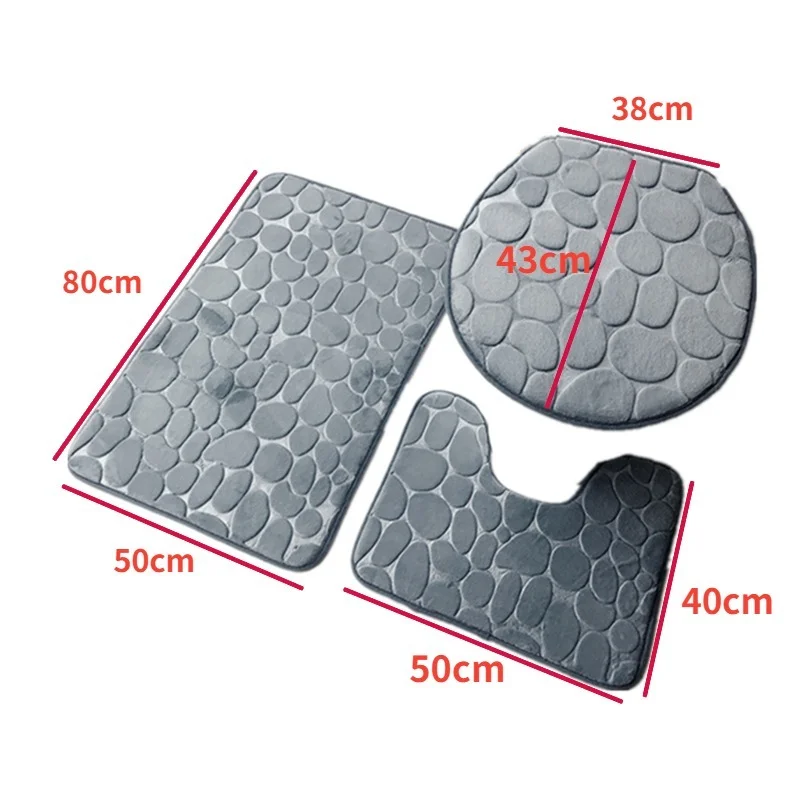 Набор из 3 ковриков для ванной комнаты, набор мягких нескользящих ковриков из 2 шт. из булыжника, коврик для ванной, впитывающие коврики для душа, напольные коврики с крышкой для туалета