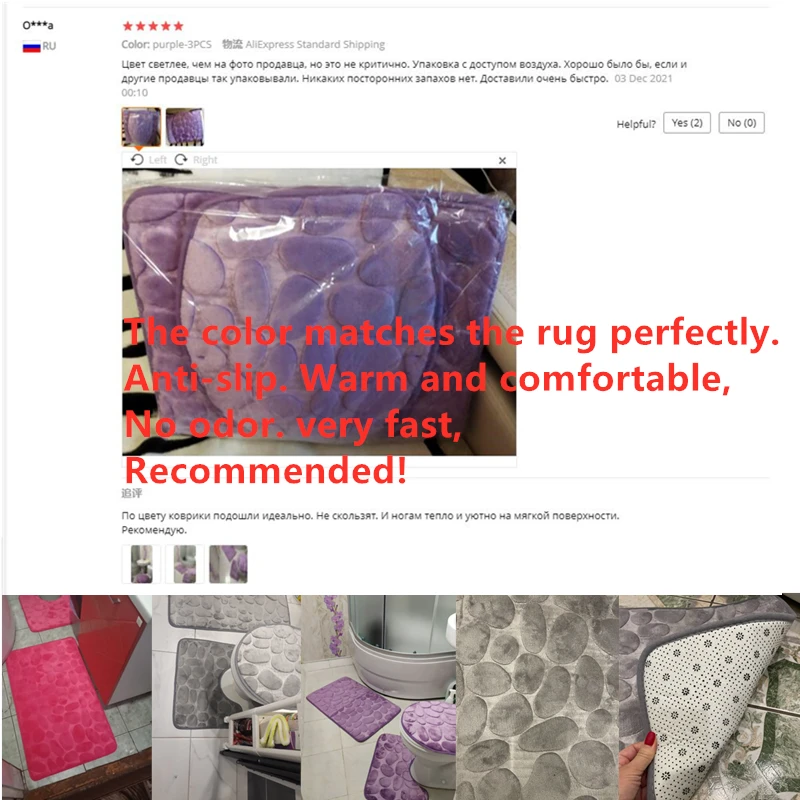 Товар хороший, я просто хочу, чтобы он был более тяжелым, поэтому он не скользит. Нижний коврик для унитаза немного меньше, чем я хотел бы, но все хорошо работают. В целом, я доволен своим товаром, поэтому я принёс еще один комплект.