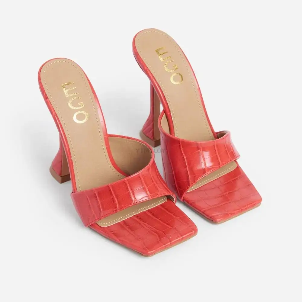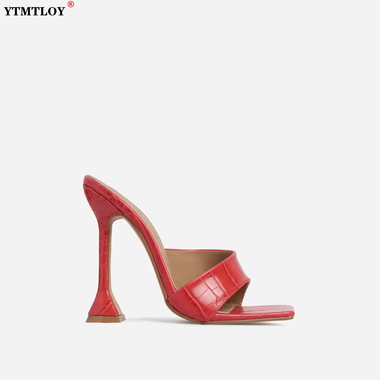 Сандалии женские на высоком каблуке, уличные легкие босоножки из искусственной кожи, туфли на шпильке, пикантная модная обувь с квадратным носком, большие размеры 36-43, лето
