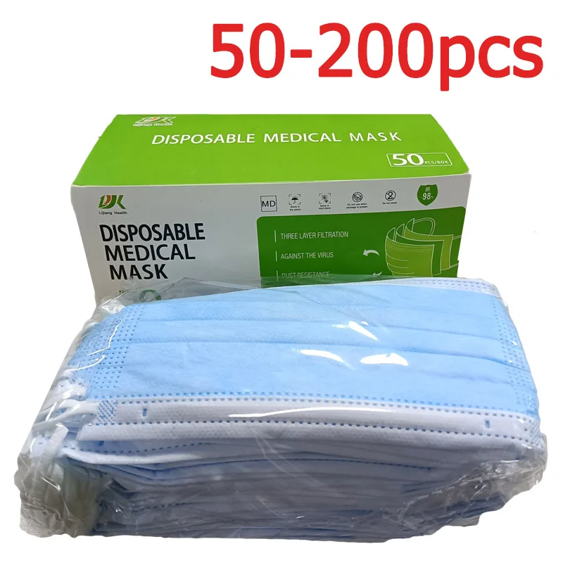 50 шт.-200 шт., одноразовая медицинская маска Lijiang, 3-слойная маска для лица, безопасные дышащие Защитные Медицинские маски с ушной петлей