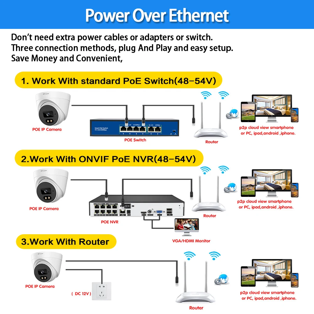 Камера видеонаблюдения системы безопасности подключи и работай, легко настроить, три способа подключения, что делает подъем более легким. Удаленный просмотр в любом месте в любое время.