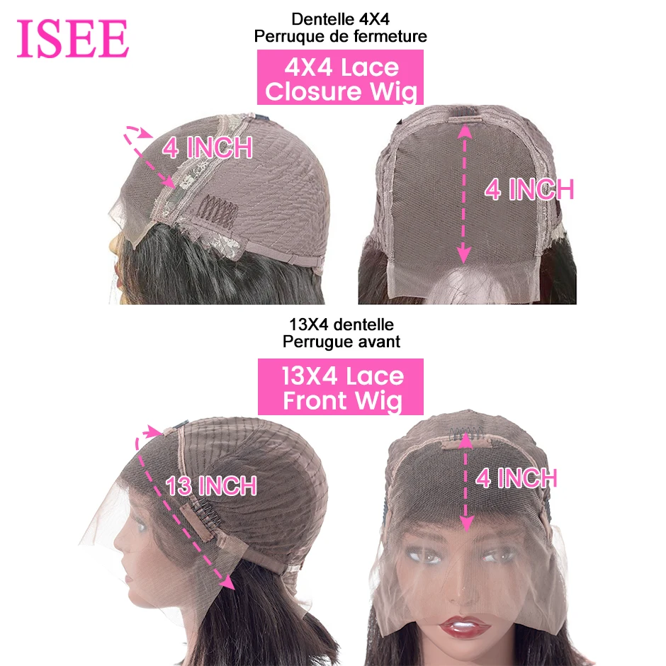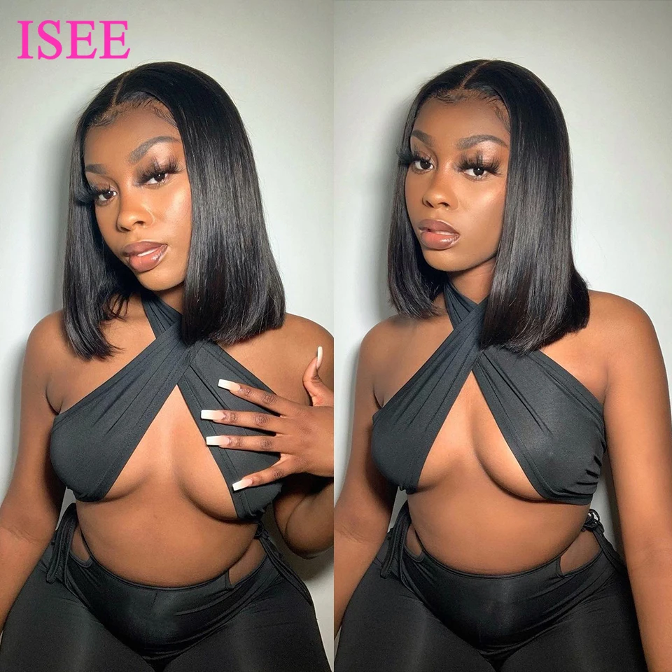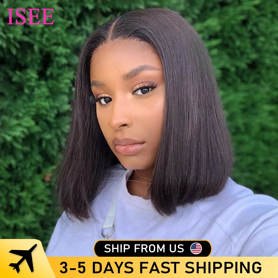 Бразильские прямые волосы, человеческие волосы, 4x4, парик на сетке, прямые короткие волосы, парик на сетке спереди, парик ISEE