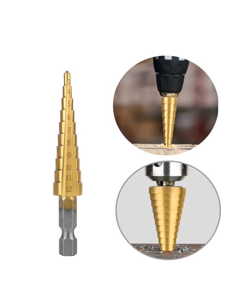 3 шт.компл. 3-12 мм 4-12 мм 4-20 мм HSS ступенчатое сверло с прямым желобом с титановым покрытием для дерева и металла, набор инструментов для сверления сердечника