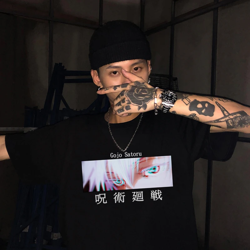 Футболка мужская с японским принтом манга юютсу Kaisen Harajuku, одежда с графическим рисунком, топ, уличная одежда унисекс, аниме футболка с дьявольскими глазами годжо Сатору