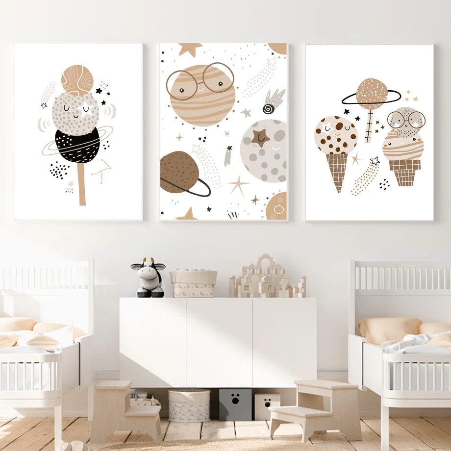 Картина на холсте с изображением планеты мороженого, радуги, алфавита, плакаты и принты в скандинавском стиле, настенные картины, декор для детской комнаты