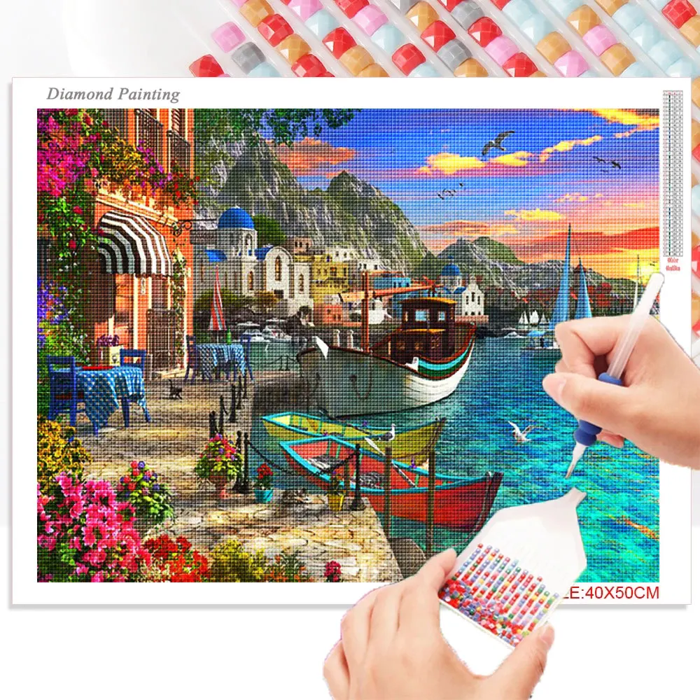 5D алмазная живопись сделай сам, мозаика с маленькой лодкой, полная...