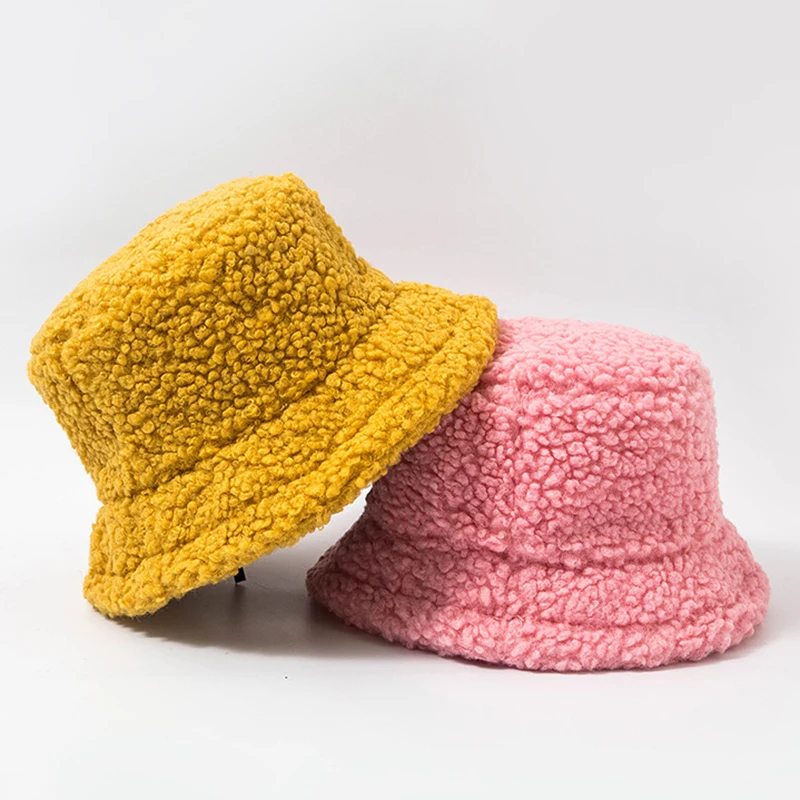 Зимняя шапка для женщин, Панама из овечьей шерсти, теплая плюшевая ...