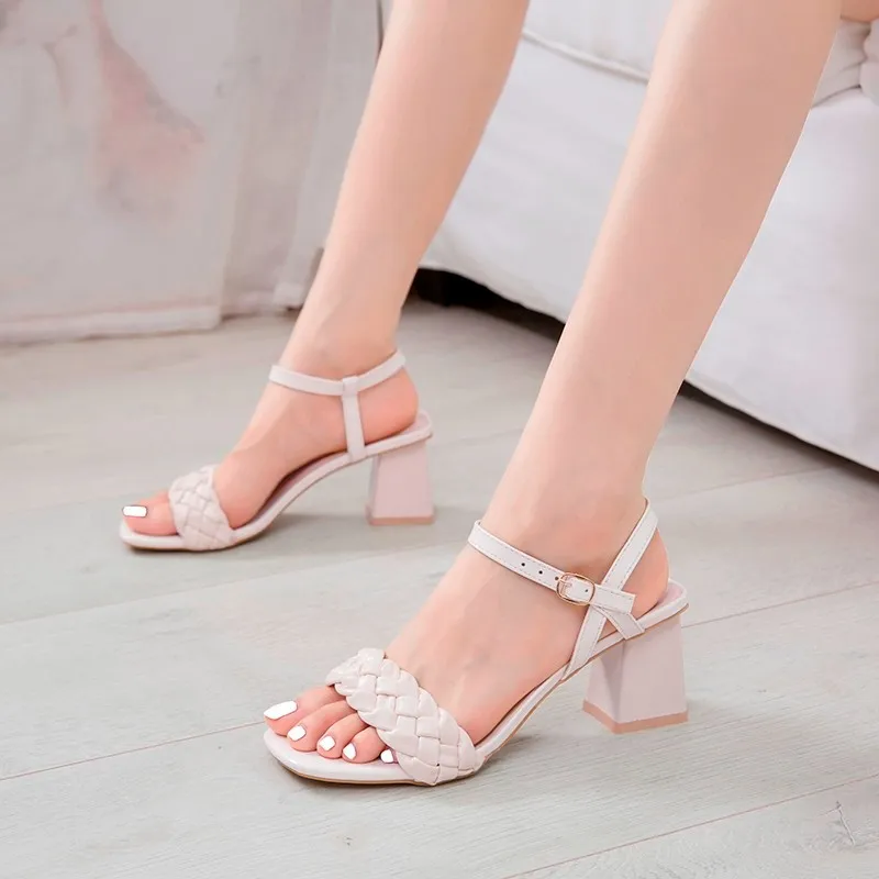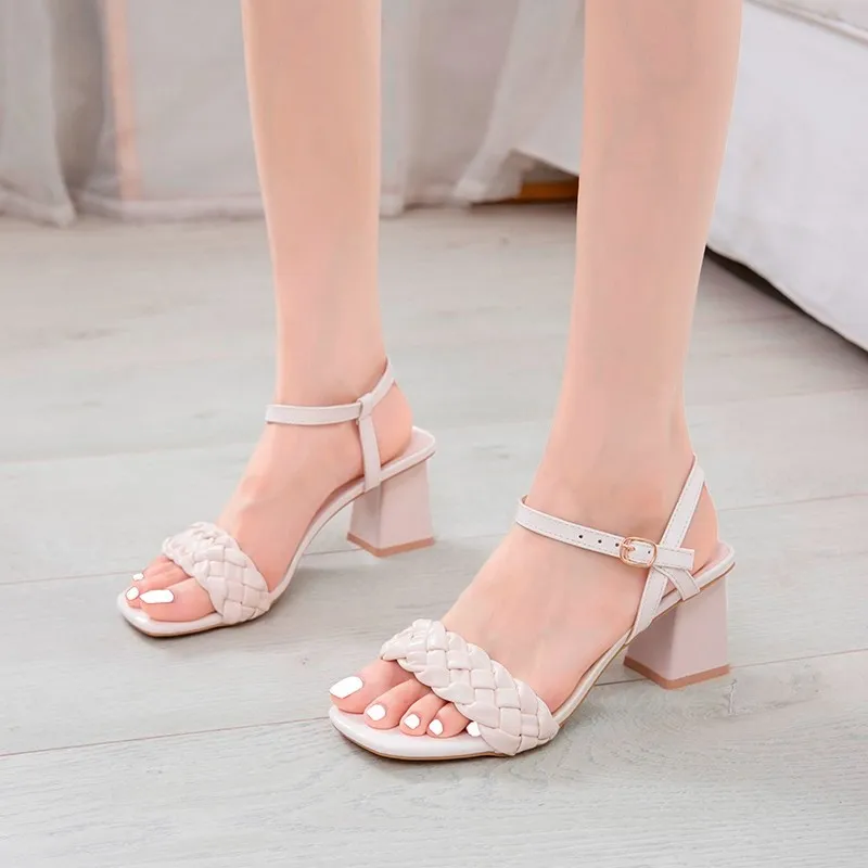 Женские босоножки из искусственной кожи, на высоком квадратном каблуке, с открытым носком, однотонные, мягкие, с пряжкой и ремешком, для лета
