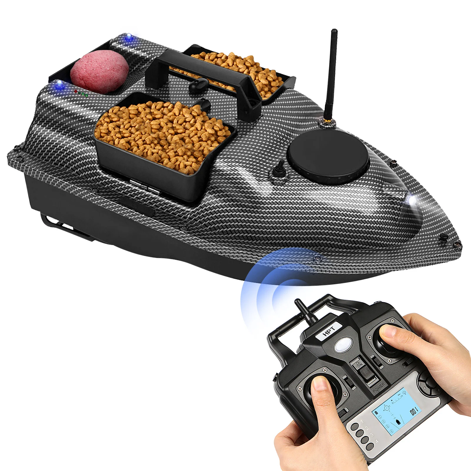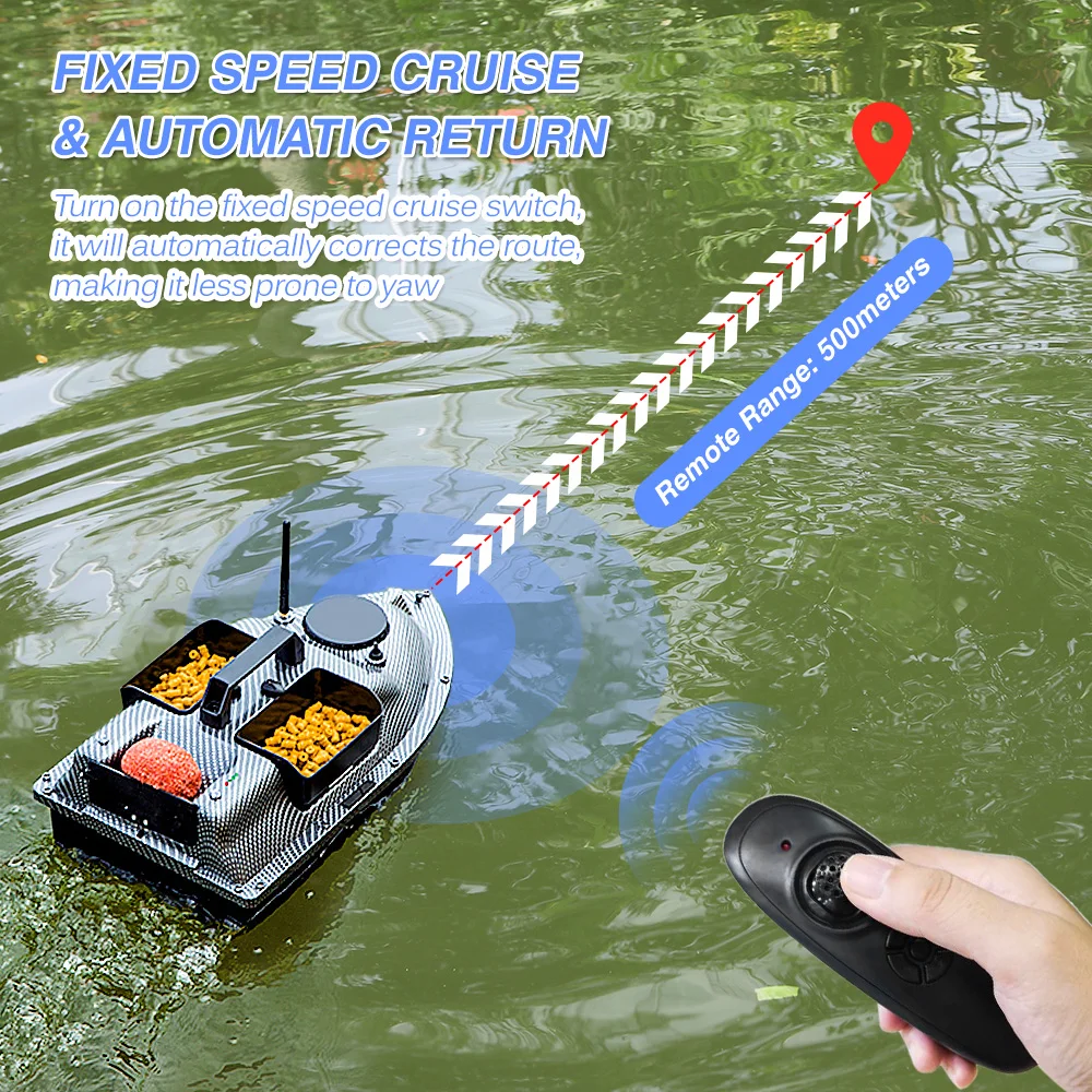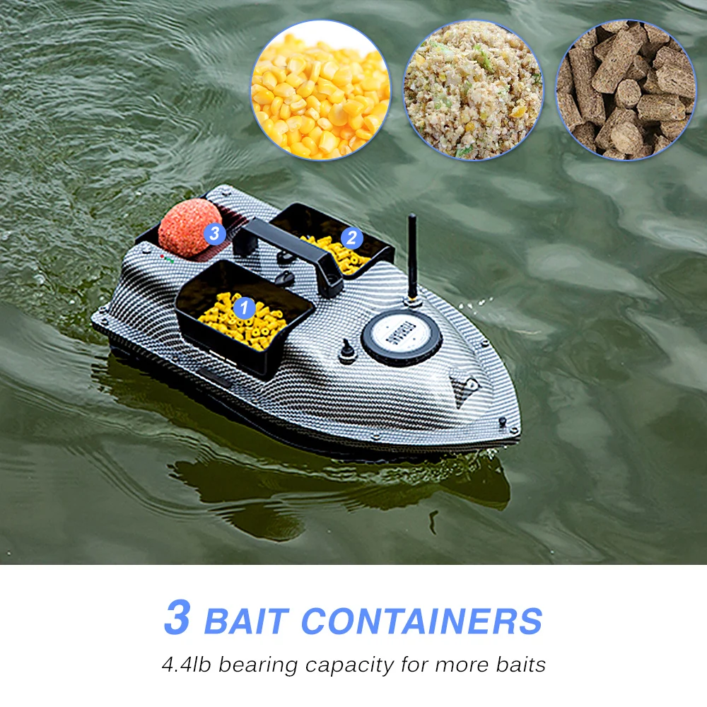 Особенности:Функция GPS помогает установить 4 произвольных точки позиционирования, и лодка может быть вперед и назад на основе точки, которую вы устанавливаете.При обнаружении потери сигнала или низкого заряда батареи лодка автоматически вернется в исходное положение через 15 секунд. Не беспокойтесь о потере.ЖК-дисплей пульта будет отображать несколько данных для вашего, таких как питание батареи, расстояние, компас, положение и светильник.3 контейнера для наживки с около 4.4lb несущей способностью для большего количества наживок.Беспроводное управление и Круизный переключатель с фиксированной скоростью позволяют выпустить приманку далеко. (Дистанционный диапазон: 500 метров/540 ярдов)Двойные двигатели и двойные пропеллеры делают лодку легкой в спорте и кролировании.1 передние белые огни и 2 задние синие ночные огни для ночной рыбалки и кормления.Лодка-приманка питается от аккумуляторной батареи (в комплекте). Съемный аккумулятор позволяет легко заряжать отдельно без лодки.Обтекаемый корпус уменьшает Водонепроницаемость и 6-7 уровней устойчивость к волнам.Пульт дистанционного управления питается от 4 батареек AA (в комплекте).Спецификация:Функция: без GPS/с GPS (опционально)Аккумулятор лодки-приманки: 5200 мАч/12000 мАч (опционально)Время работы: прибл. 3 ч/5 чВремя заказа: ≥ 10 часов/≥ 14 часовМатериал: АБС-пластикНесущая способность: кг/2 кг/4,4 фунтов лёгкий нейлоновый тросДистанционный диапазон: 500 м/540 ярдовПульт дистанционного управления: 4 батарейки типа АА (в комплекте)Размер лодки: 50*25*17 см/19,7*9,8*6,7 дюймовВес: прибл. 1,7 кг/3,7 фунтовРазмер посылка: 56*32*25 см/22,0*12,6*9,8 дюймовВес посылка: прибл. 2,58-2,82 кг/5,7-6,2 фунтов лёгкий нейлоновый тросПосылка:1 * Лодка-приманка1 * батарея лодки приманки1 * пульт дистанционного управления4 * батарейки AA (для дистанционного управления)1 * антенна1 * Руководство пользователя1 * зарядное устройство2 * Запасные пропеллерыПримечание:1. Цвет товара, отображаемый на фотографиях, может немного отличаться на мониторе вашего компьютера, так как мониторы. Спасибо за понимание.2. Контейнер для наживки влево и вправо без функции самостоятельного возврата, вы должны вытянуть его назад руками после освобождения. Но задний контейнер для наживки возвращается обратно с помощью пульта дистанционного управления.3. Больше работы с пультом дистанционного управления, пожалуйста, обратитесь к руководству пользователя.