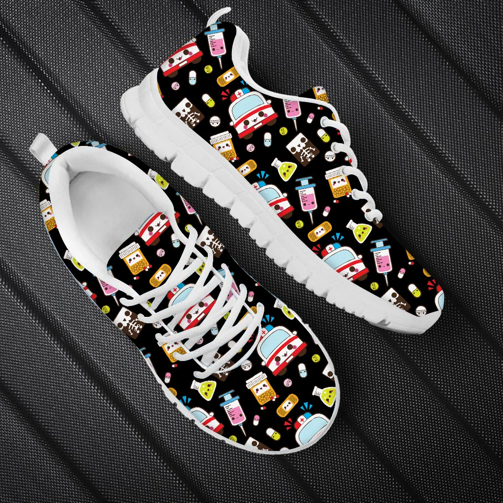 Кроссовки Doginthehole женские, милая обувь на плоской подошве, с мультяшным принтом скорой помощи, Повседневная сетчатая обувь для бега, на шнуровке, весна-осень