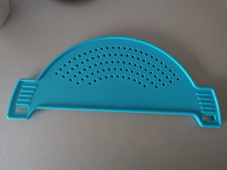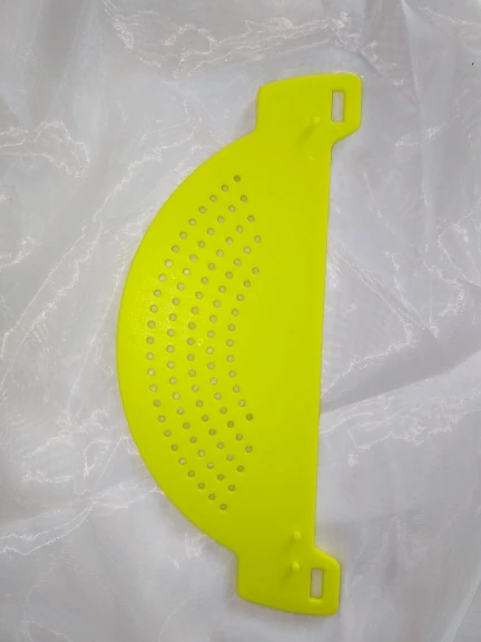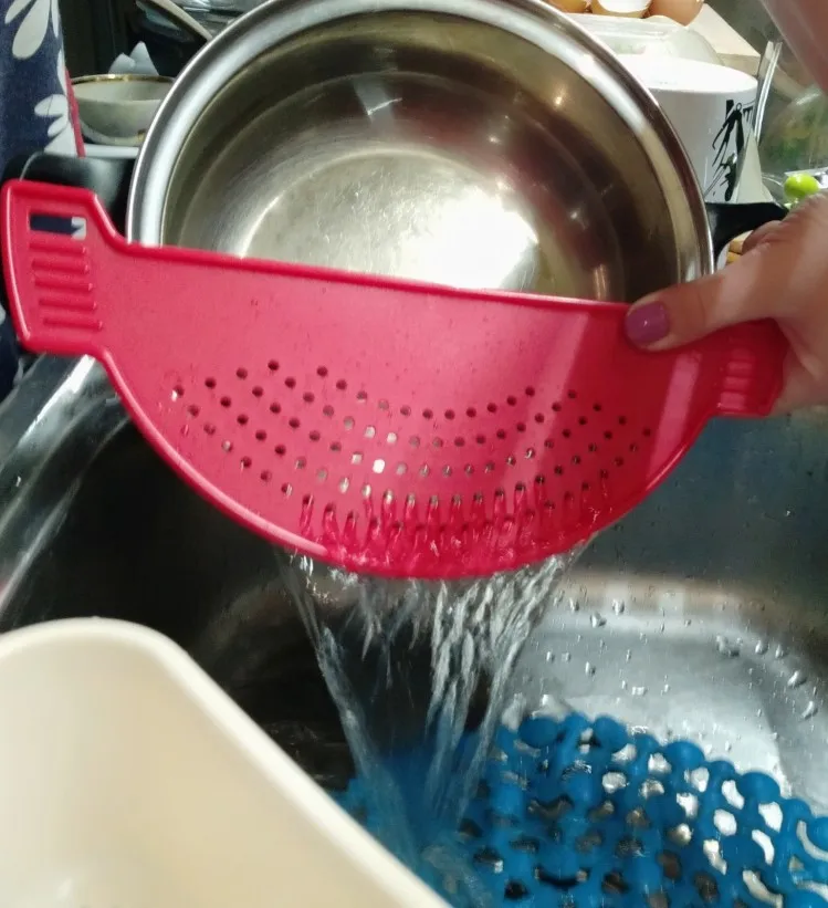 Давно хотела такую штуку. Очень удобно, когда есть необходимость слить воду, а содержимое оставить в кастрюле. С одной стороны ребра жёсткости, которые не позволяют скользить пальцам. С другой стороны фиксаторы, с помощью которых можно надевать на разный диаметр кастрюли. Спасибо!