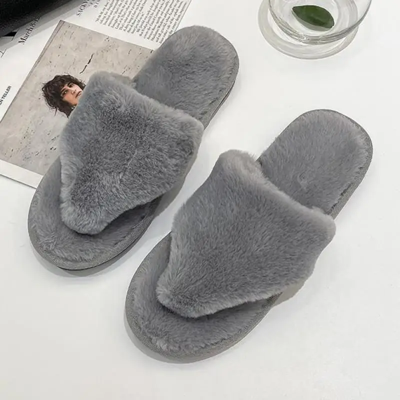 Женские домашние тапочки из искусственного меха, теплая обувь на плоской подошве, домашние меховые слипоны для дам, размеры 37-42, оптовая продажа, женские домашние тапочки