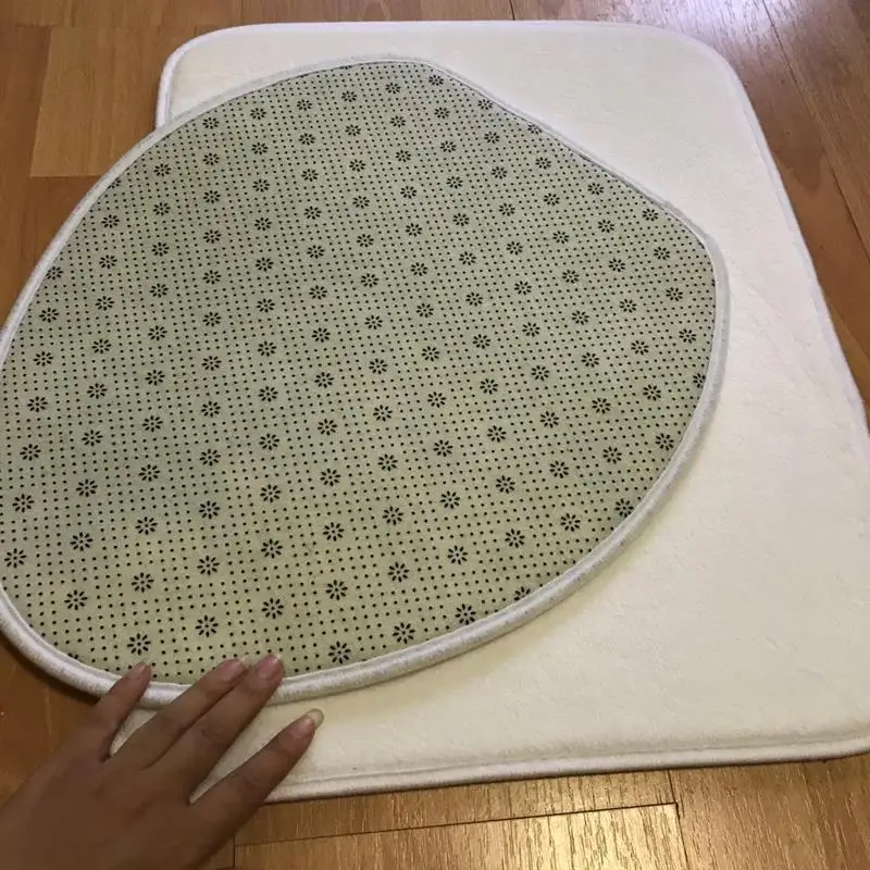 Ковер для туалетных принадлежностей действительно очень маленький, он тоже слишком легкий и поэтому не удерживается на месте. Если я положу его против туалета, мои ноги на плитке.