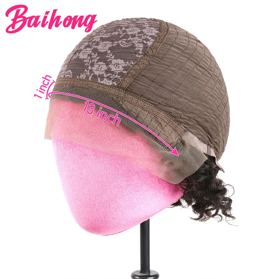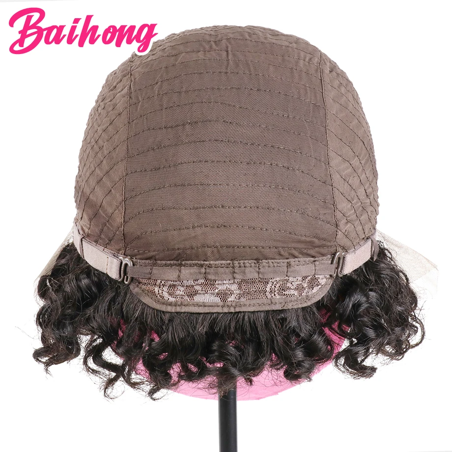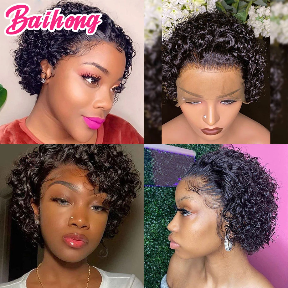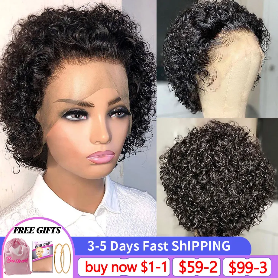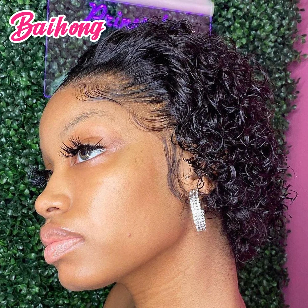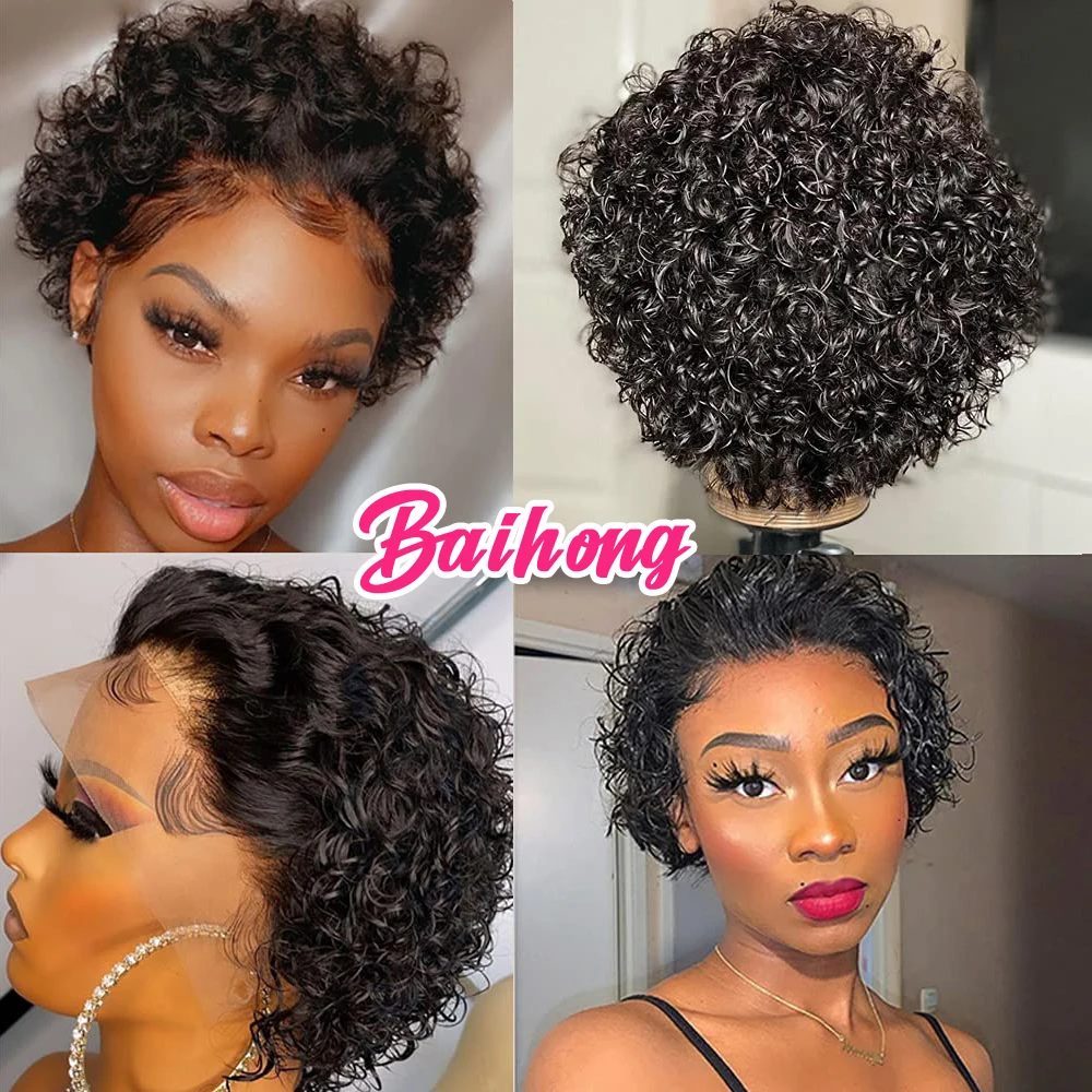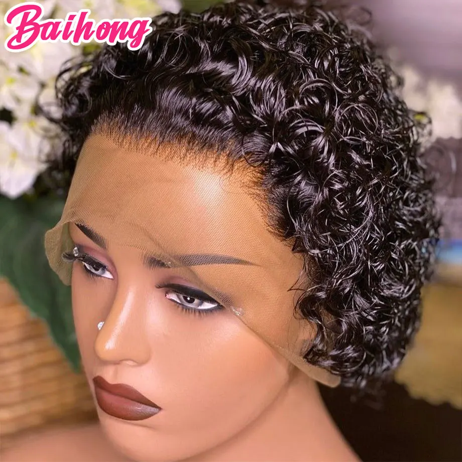 Кудрявый парик из человеческих волос, парик с кружевной передней частью, короткий прозрачный парик, 13x4, 13x1, кружевной бразильский парик, дешево для женщин BAIHONG