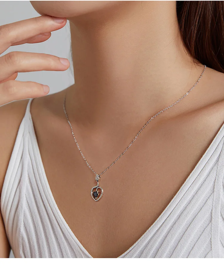 Женская цепочка из серебра 925 пробы, с черным Цирконом