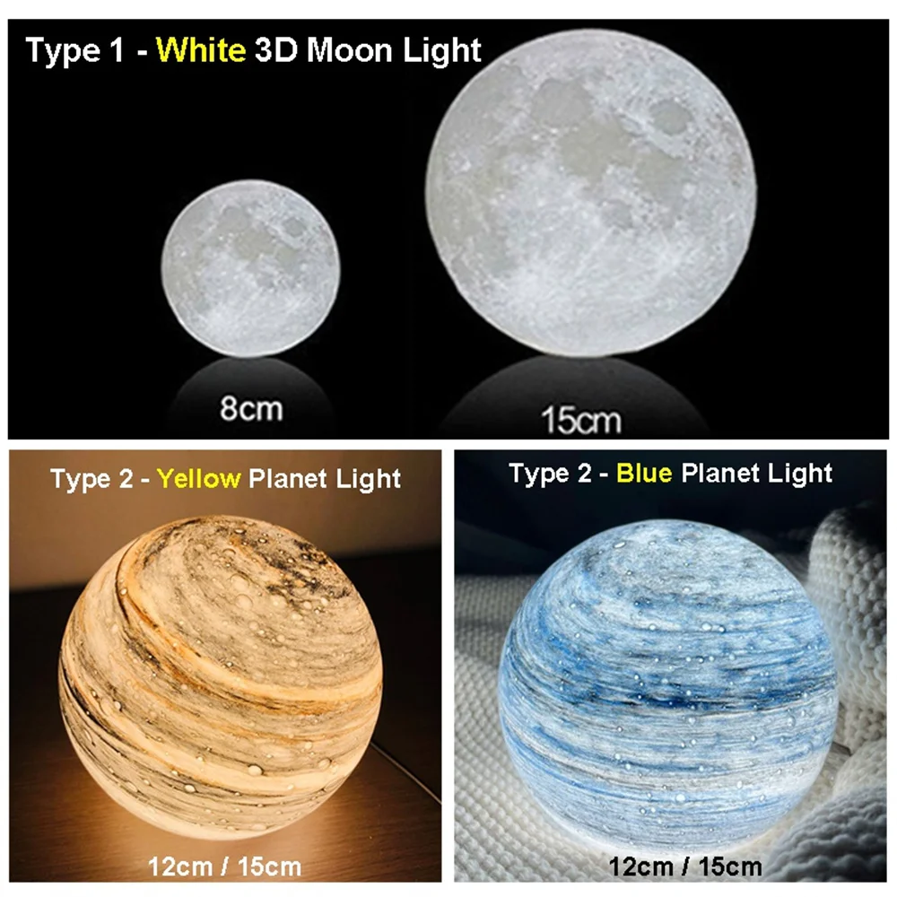 Светодиодный ночник со звездным небом, настольная лампа с USB, светильник в виде планеты, Луны, Галактический светильник с сенсорным датчиком для спальни, прикроватная тумбочка, домашний декор, подарок для детей