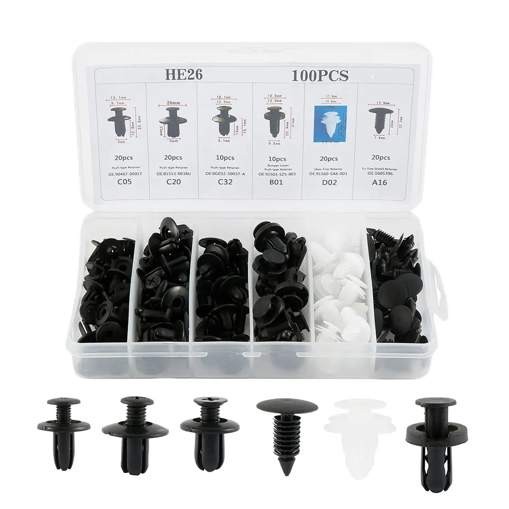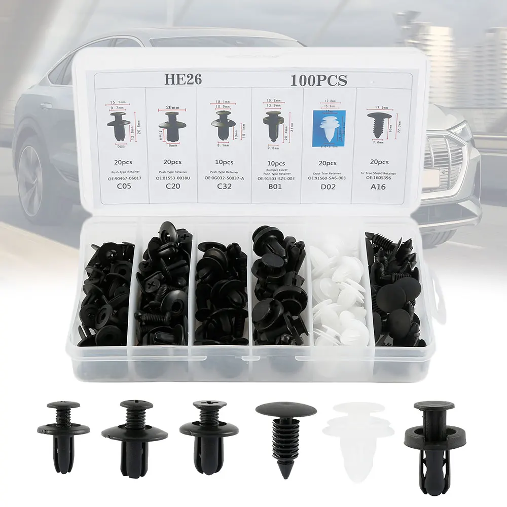 Комплект зажимов для крепления автомобиля, 6 размеров, 100 шт.