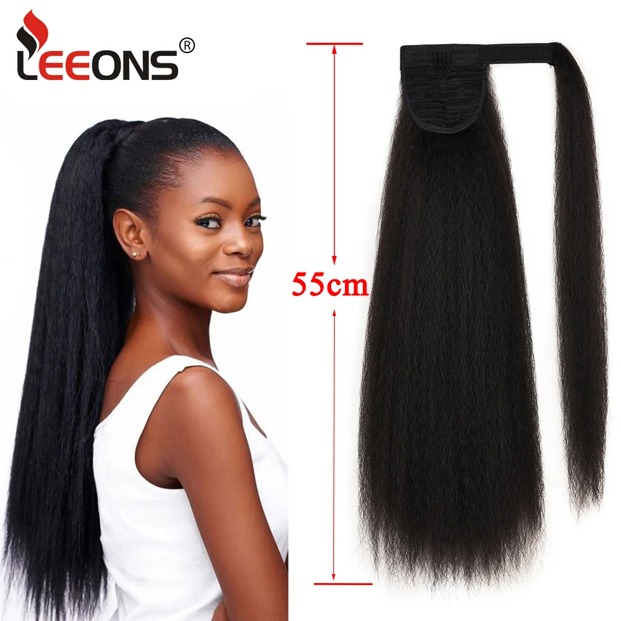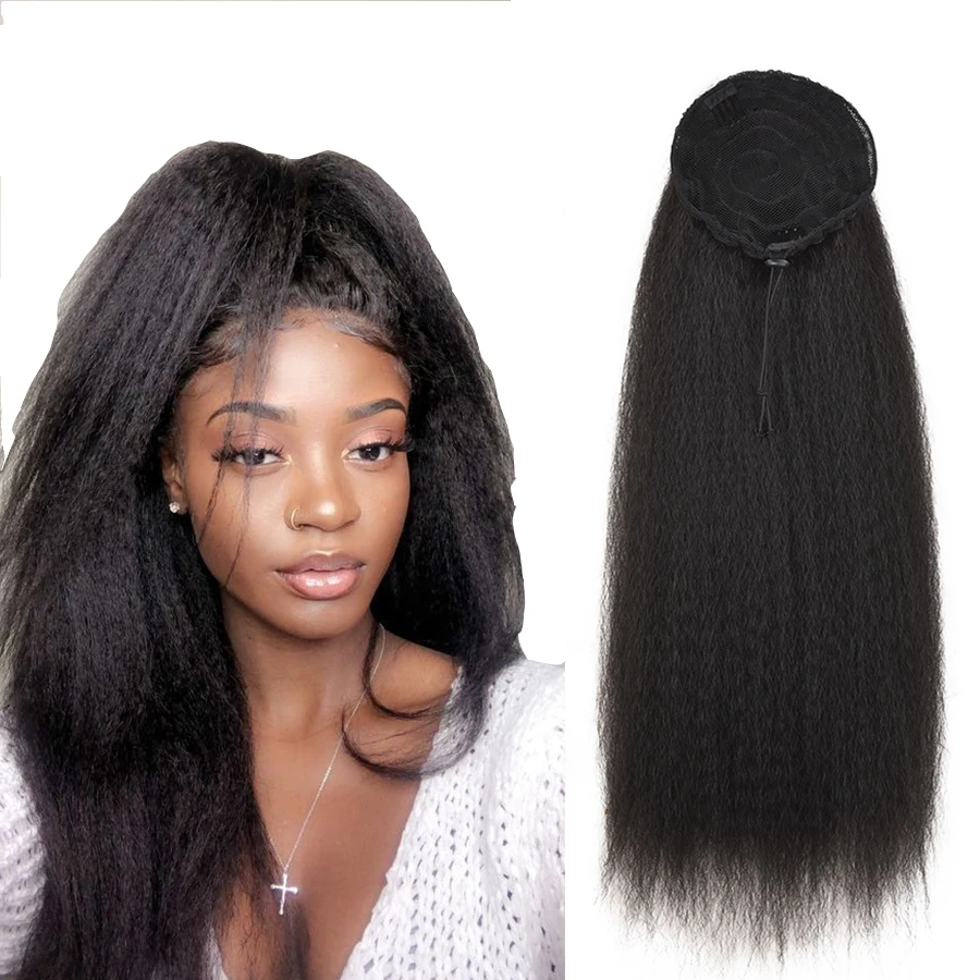 Прямой хвост Yaki, 22 дюйма, Регулируемая липучка, Африканский конский хвост, зажим для волос, синтетический шиньон, удлинители волос в стиле афро