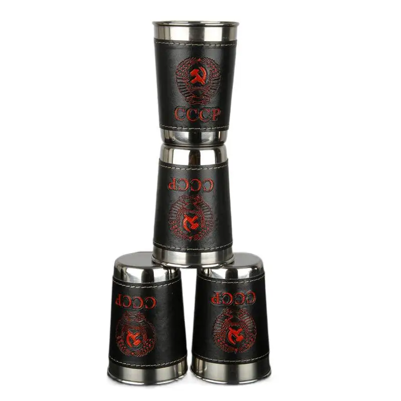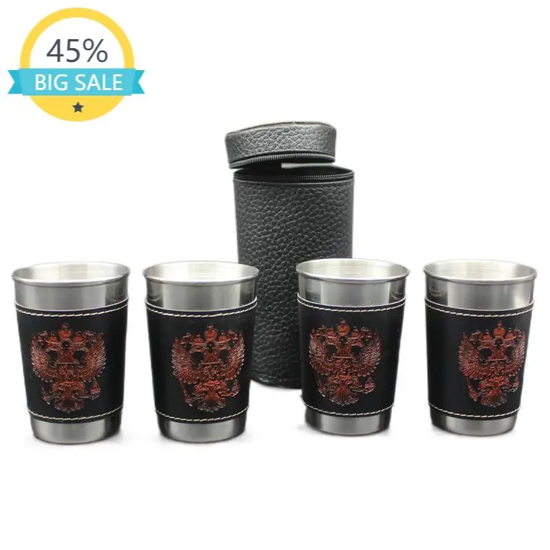 4 металлических рюмки, рюмка из нержавеющей стали с крышкой из искусственной кожи