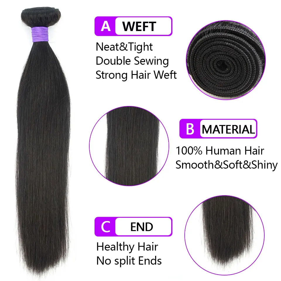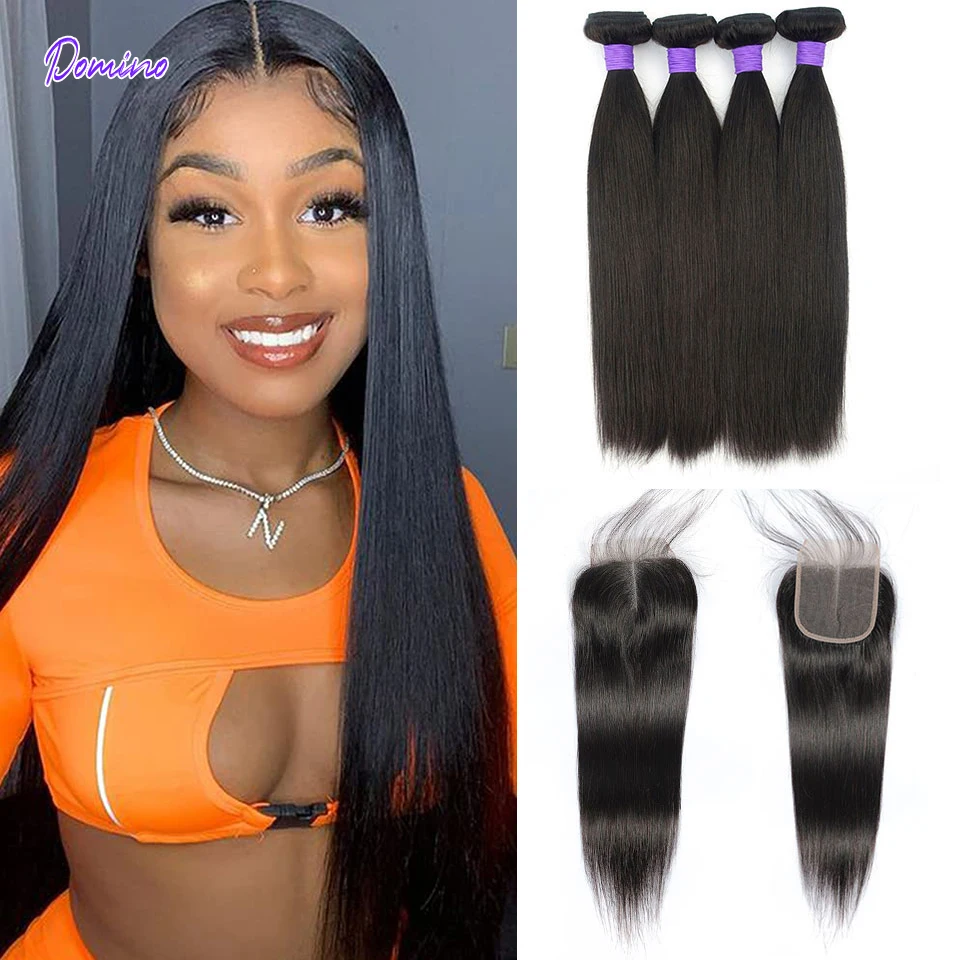 Домино прямые бразильские волосы 3 4 пряди с закрытием человечески...
