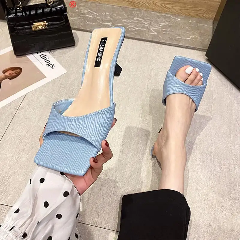 Мюли женские на высоком каблуке, Модные Элегантные классические туфли, сланцы, пикантные сандалии с открытым носком, летняя Уличная обувь