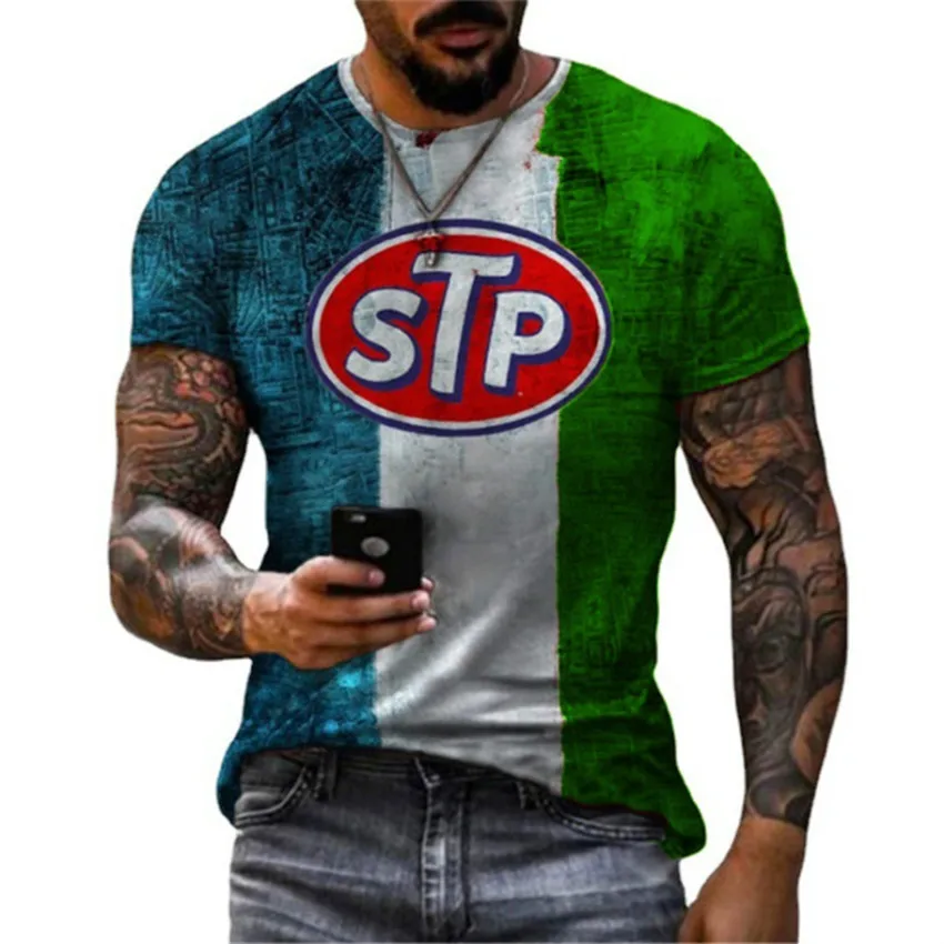 Мужская футболка с коротким рукавом, круглым вырезом и принтом