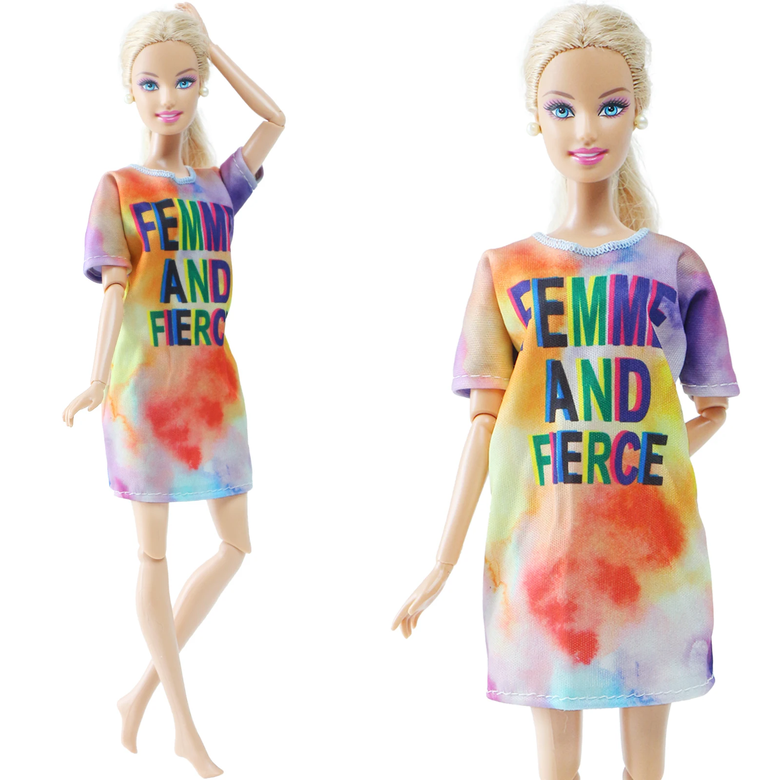 BJDBUS 1 шт. кукла футболка платье Красочные буквы повседневная одежда модная крутая Одежда для куклы Барби аксессуары DIY игрушки