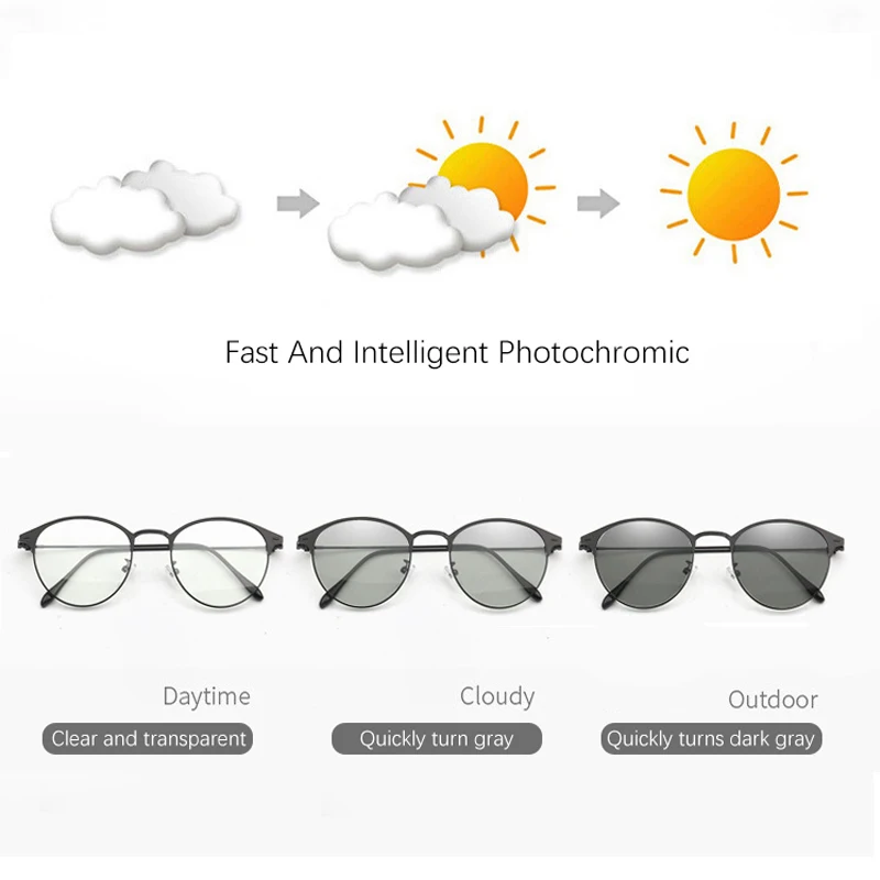 Очки солнцезащитные круглые фотохромные с защитой от синего света