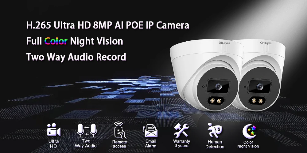 Камера видеонаблюдения OH.eyes 4K POE наружная Камера Видеонаблюдения POE HD 8 Мп цветная Купольная IP-камера ночного видения