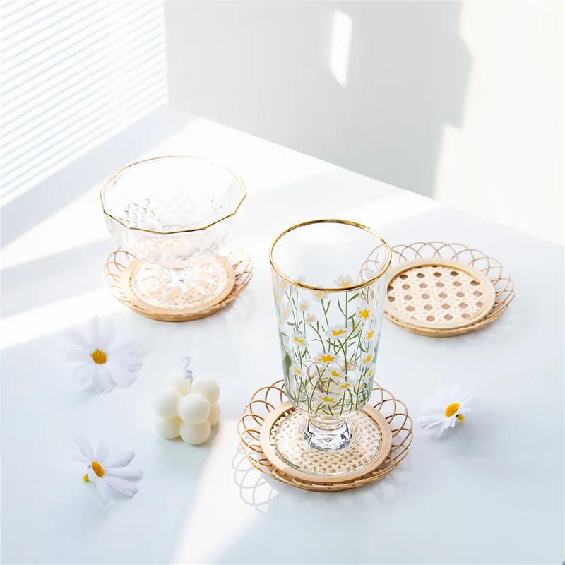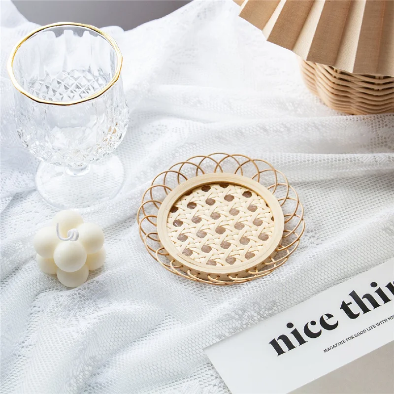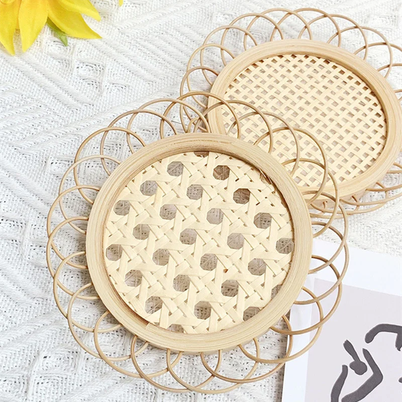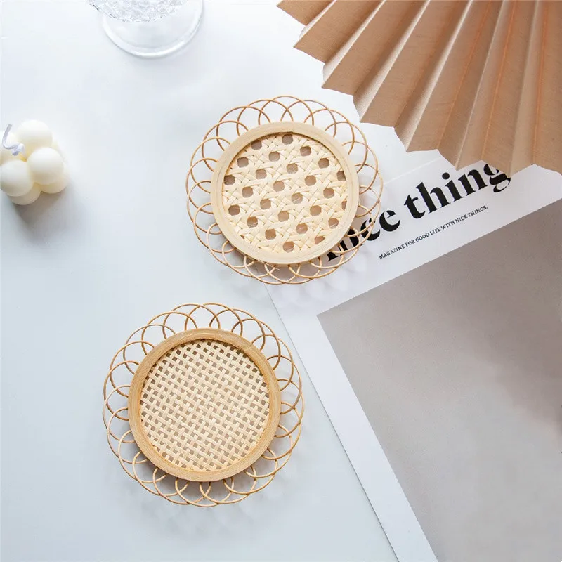 Плетеная чашка из ротанга, подставки в простом стиле для чашек под напитки, бамбуковый Плетеный подстаканник ручной работы, подставка под тарелку для кофейни