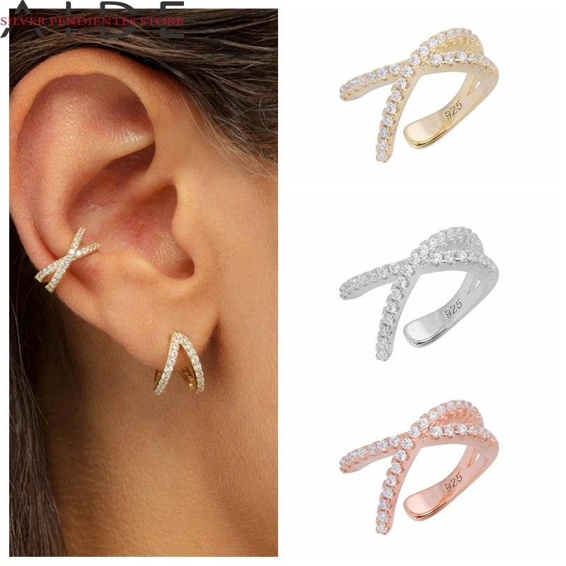 Женские серьги-каффы с перекрестными ушками AIDE 925 пробы, серебряная Ушная манжета