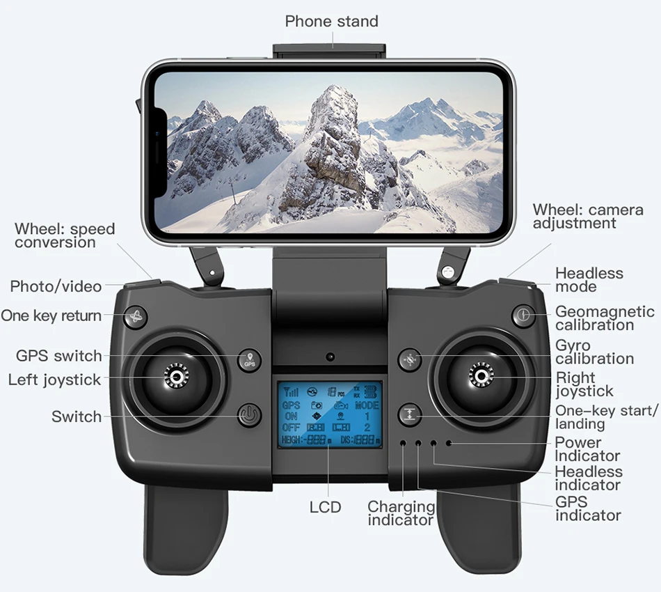 Использование подключения приложения может обеспечить стабильную передачу изображения высокой четкости, стоя на месте может видеть отдаленные пейзажи. И пульт ДУ принимает складную конструкцию, которую можно держать в сложенном состоянии, когда он не используется, что делает хранение более удобным.