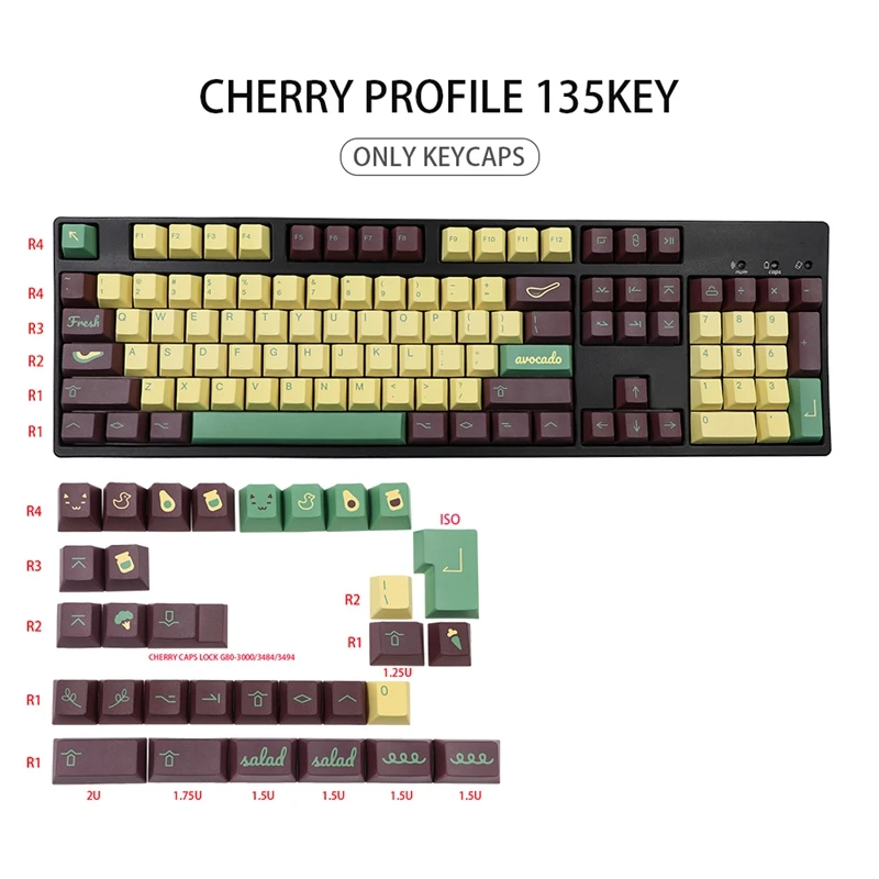 Колпачки для механической клавиатуры GK61 64 84, 135 клавиши, авокадо