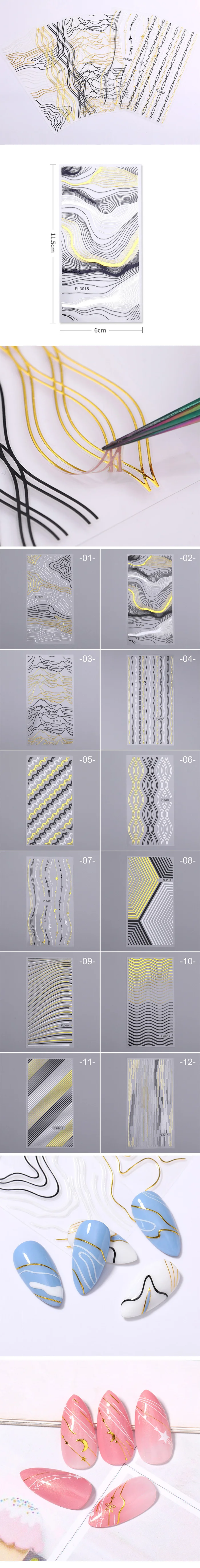 3D линия горячего тиснения для дизайна ногтей Наклейка простые черн...