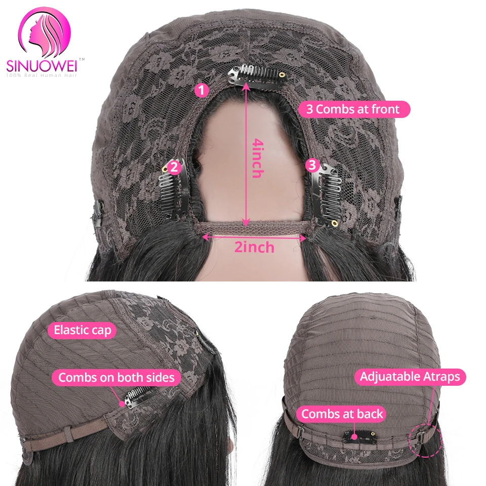 Малазийские прямые U-образные парики Sinuowei для женщин, без клея, U-образные человеческие волосы, парики с зажимами, доступные для ленивых женщин
