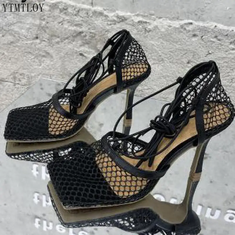 Сандалии женские сетчатые на шнуровке, пикантные босоножки с выреза...
