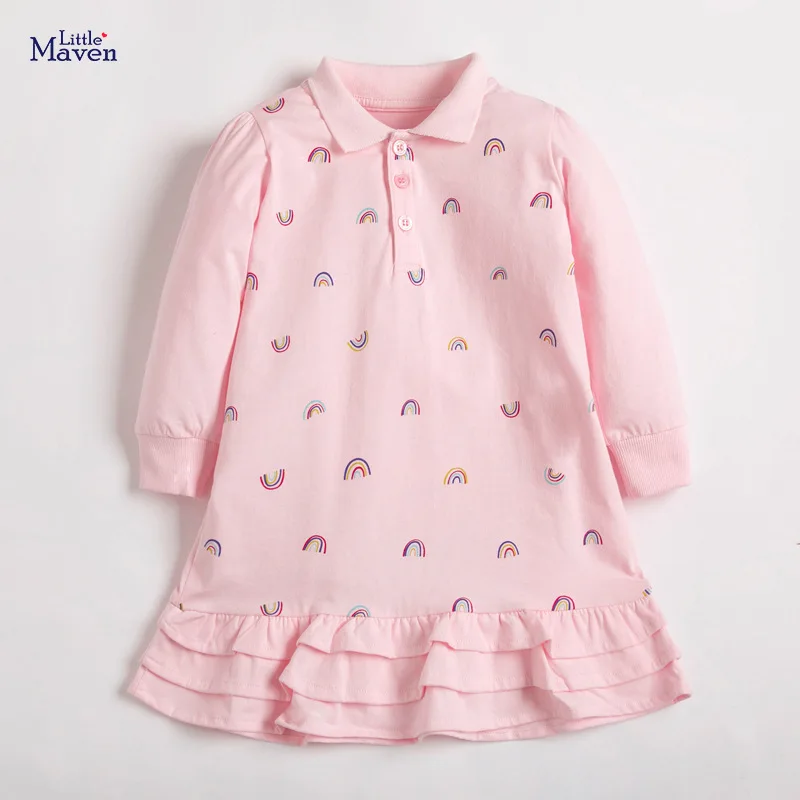 Детские платья 2021 г. Осенняя одежда для маленьких девочек Брендовое платье подарок для малышей, повседневные хлопковые розовые платья с радужным принтом для детей, От 2 до 7 лет