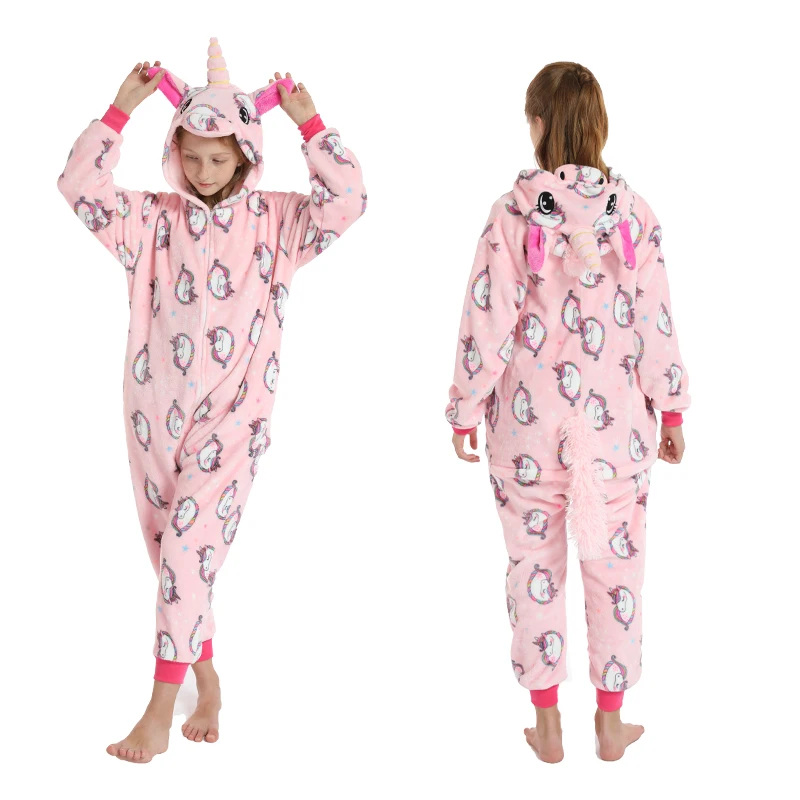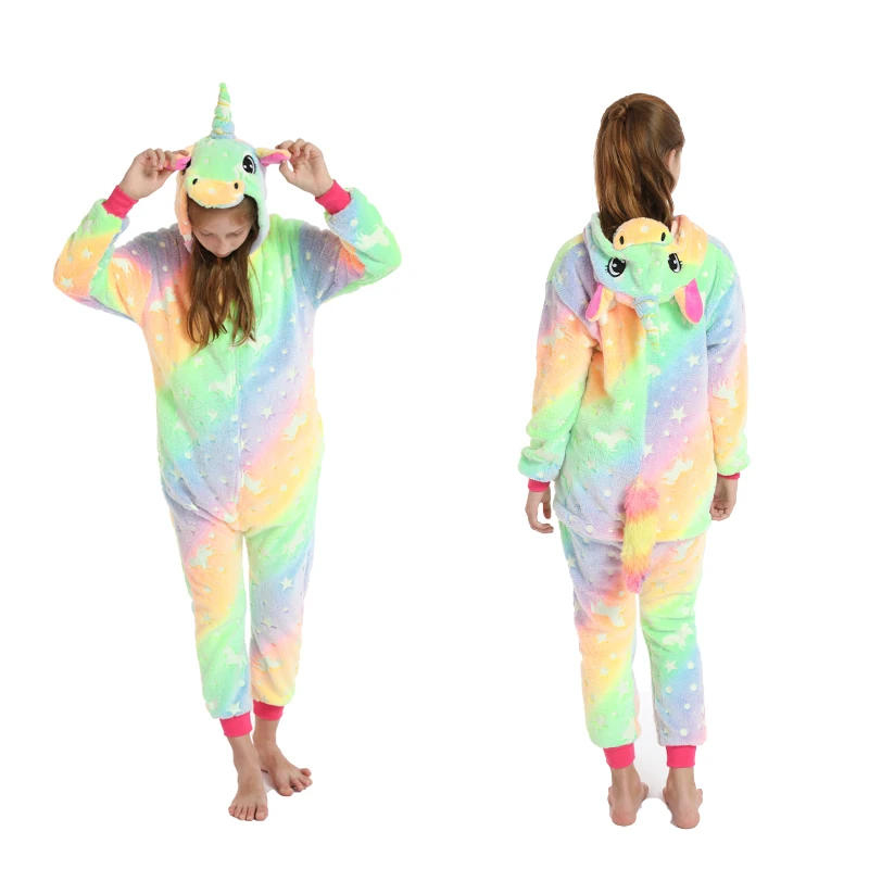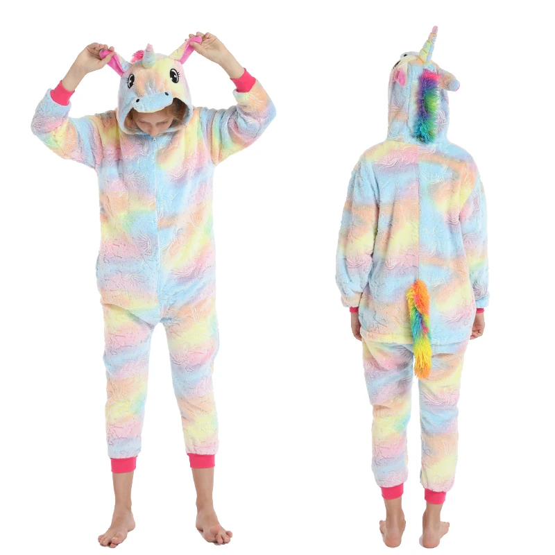 Пижама детская с единорогом, кигуруми, мультяшный костюм животного, зимняя комбинезон для мальчиков и девочек, пижама-кигуруми